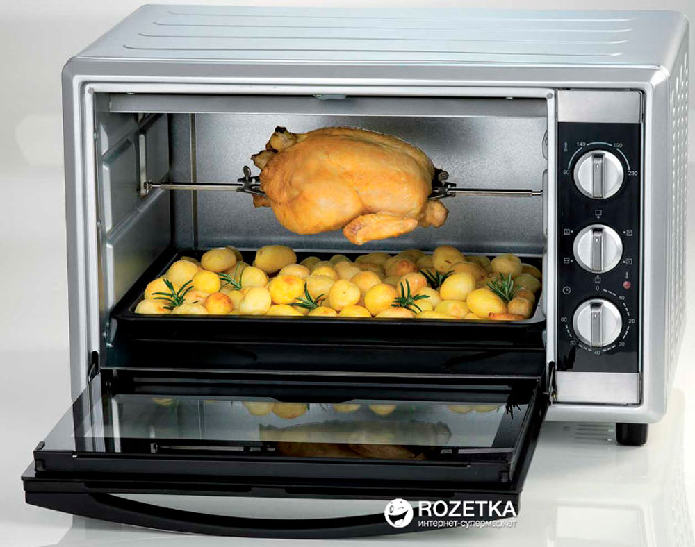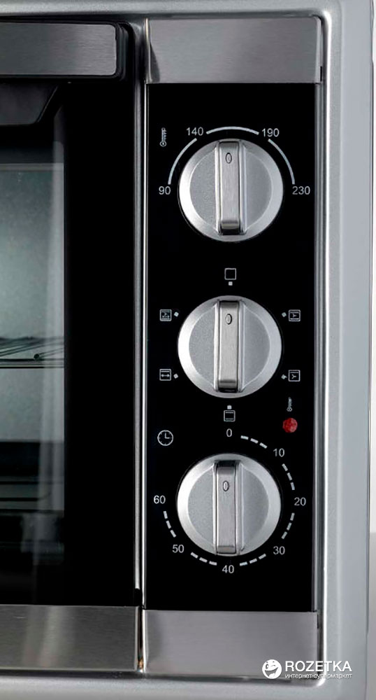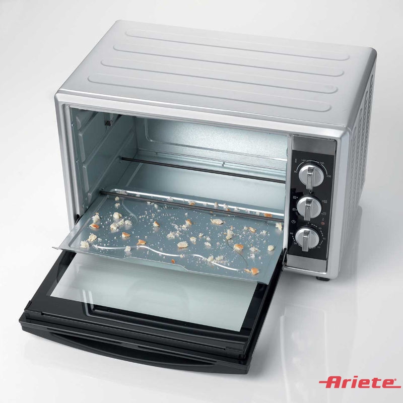 Електропіч ARIETE 986 Silver місткістю 45 л, 6 режимами приготування їжі, оснащена керованим таймером до 60 хвилин, перемикачем температури до 230 °C і функцією вентилювання під час комбінованого готування їжі. Наявність механізму з рожном і внутрішнім підсвічуванням, необхідним для контролю за процесом приготування, роблять цей електроприлад буквально незамінним на кухні.