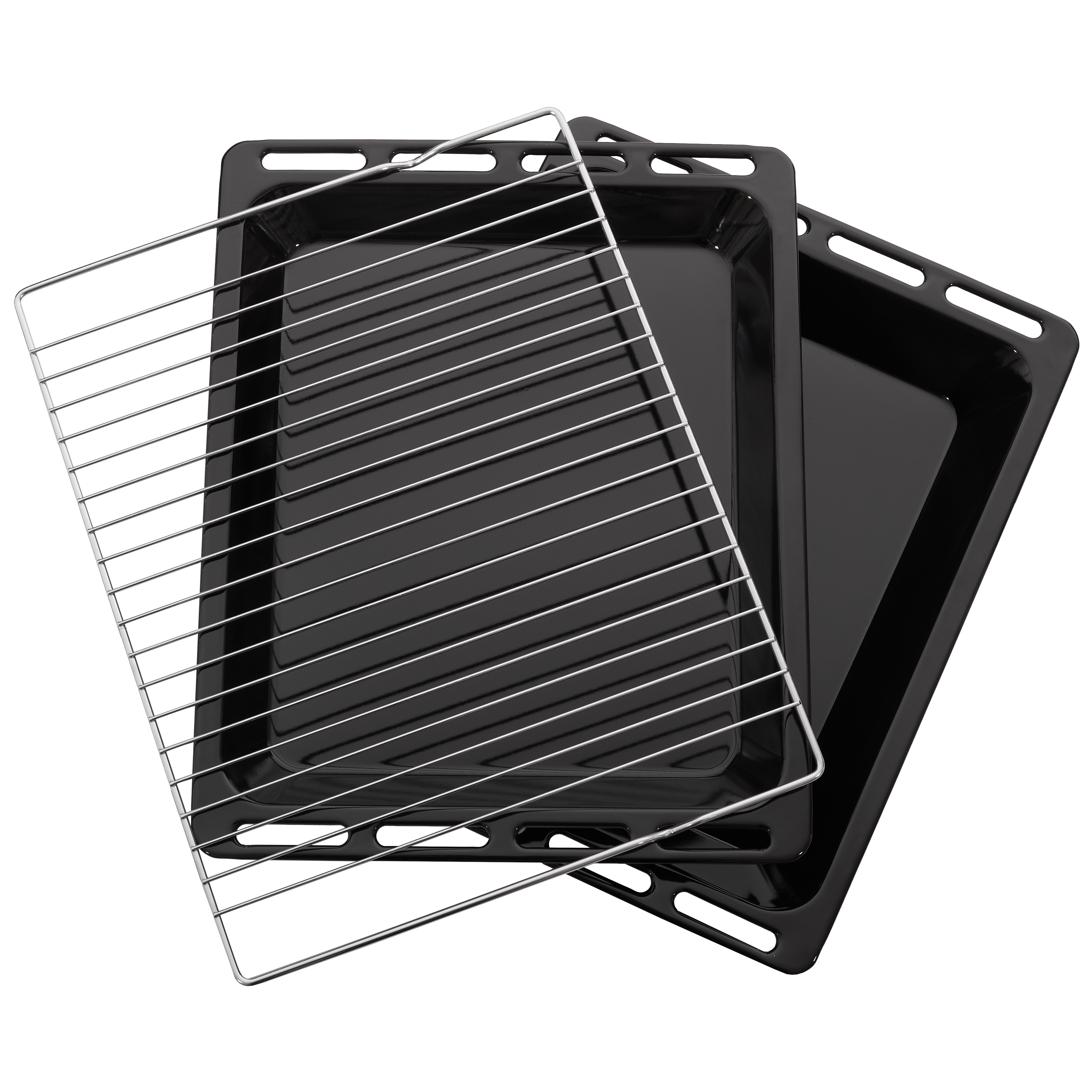 Хромовані знімні напрямні забезпечують стійке розміщення дека, а також легкі в догляді. Для безпечного користування дверцята духовки виготовлено з двошарового загартованого скла, щоб зовнішня стінка двері залишалася холодною.