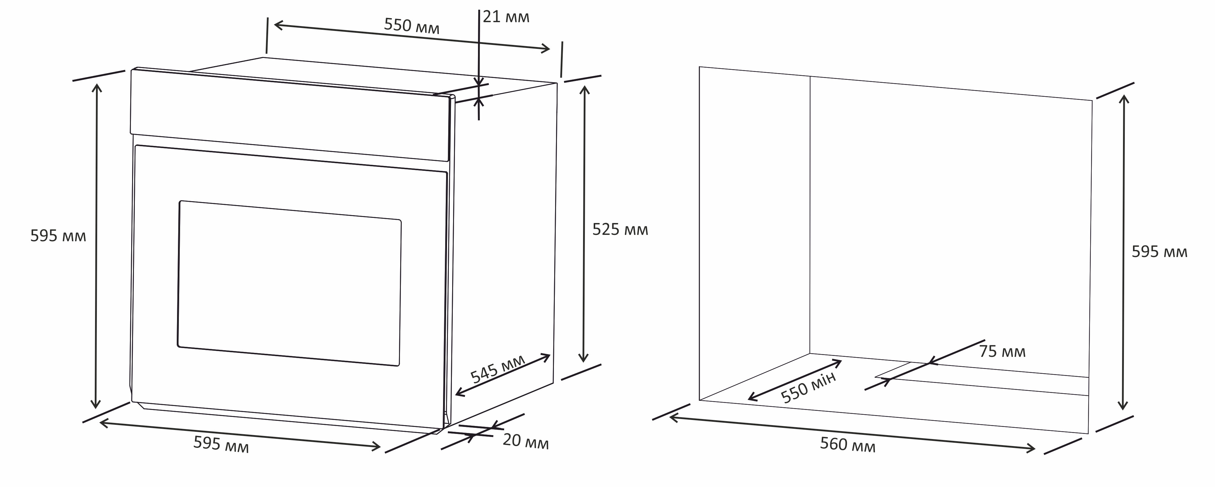 Максимальна температура духовки досягає 270 °C, тому для безпеки використання приладу, духова шафа DIANA 6006 працює з тангенціальним охолодженням, що гарантує збереження кухонних меблів.
