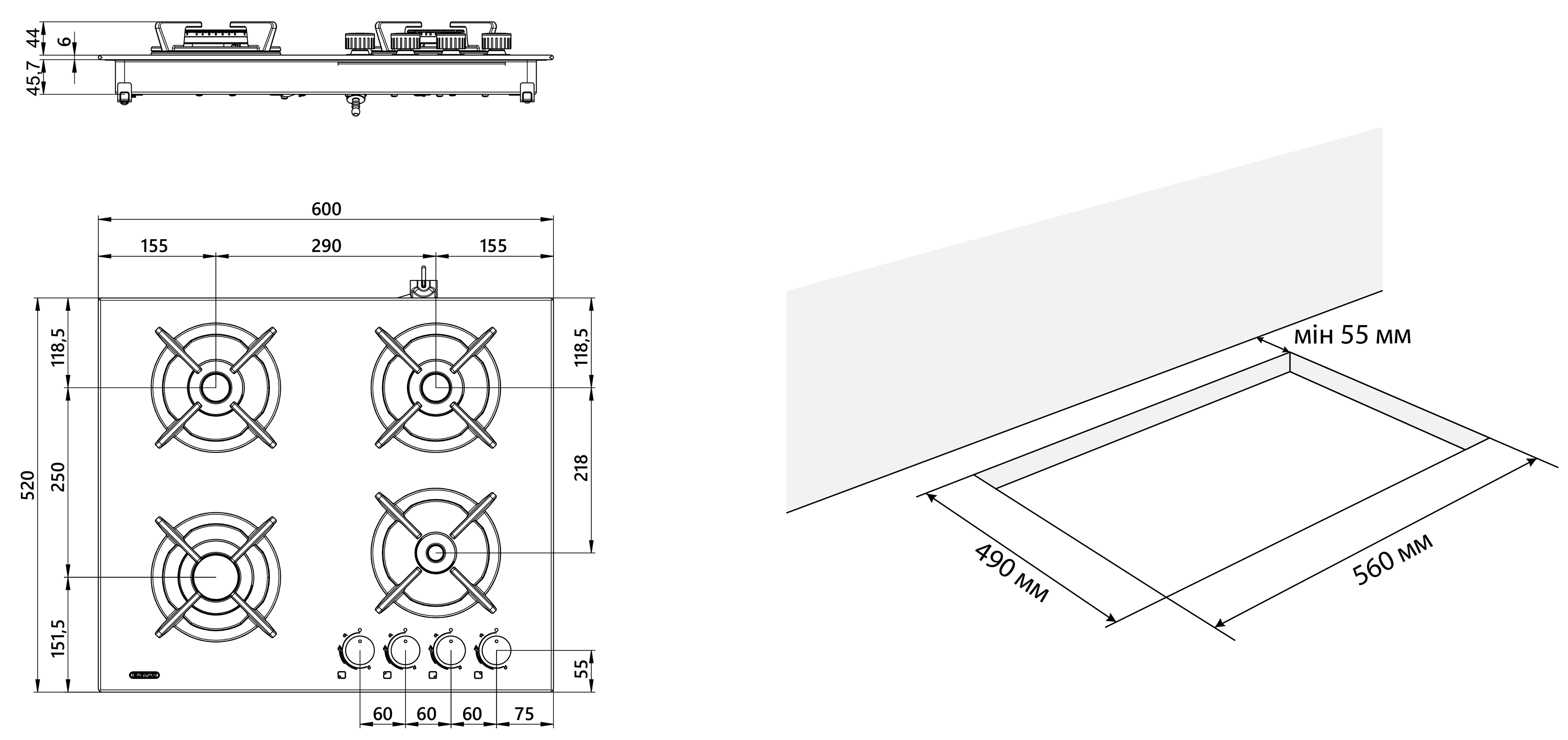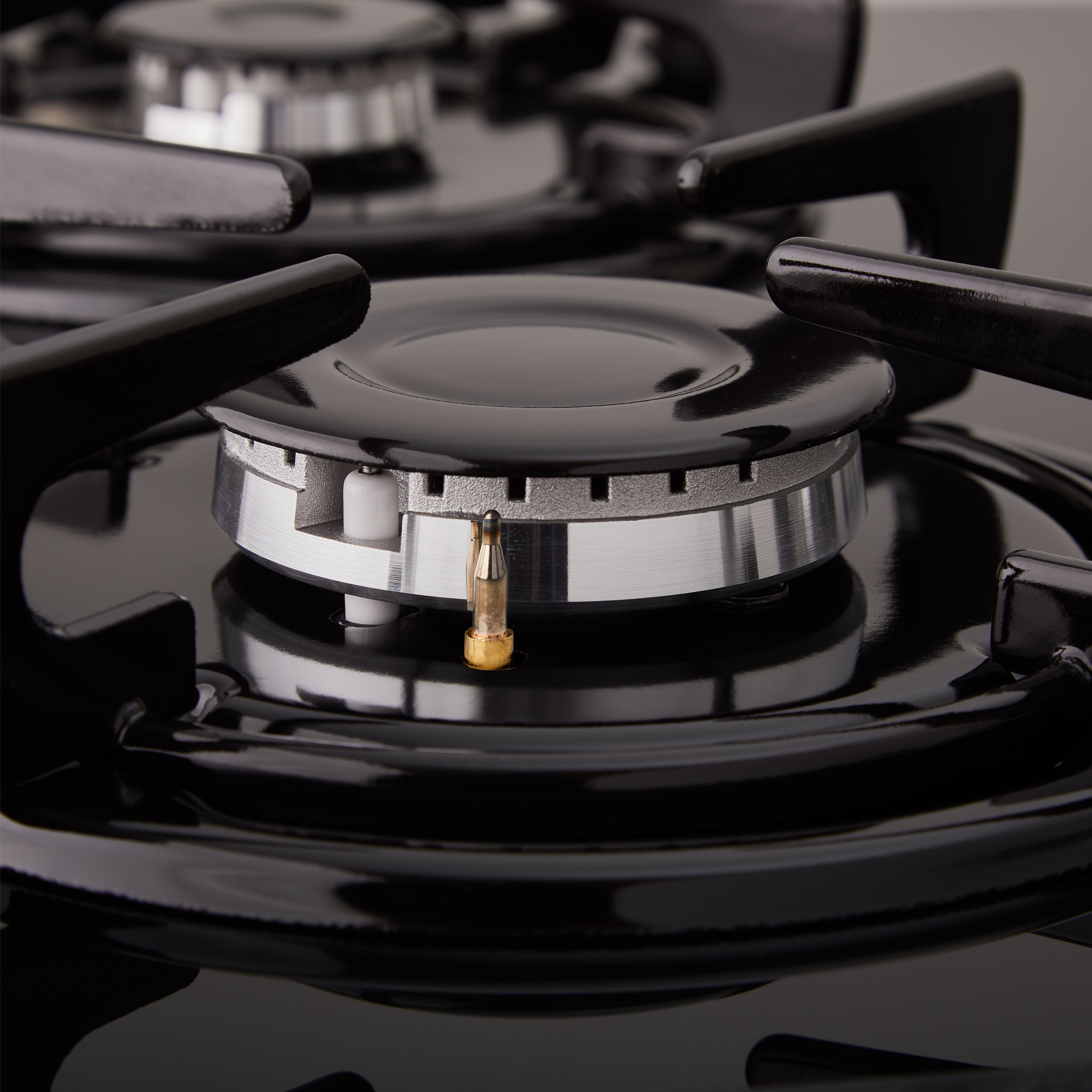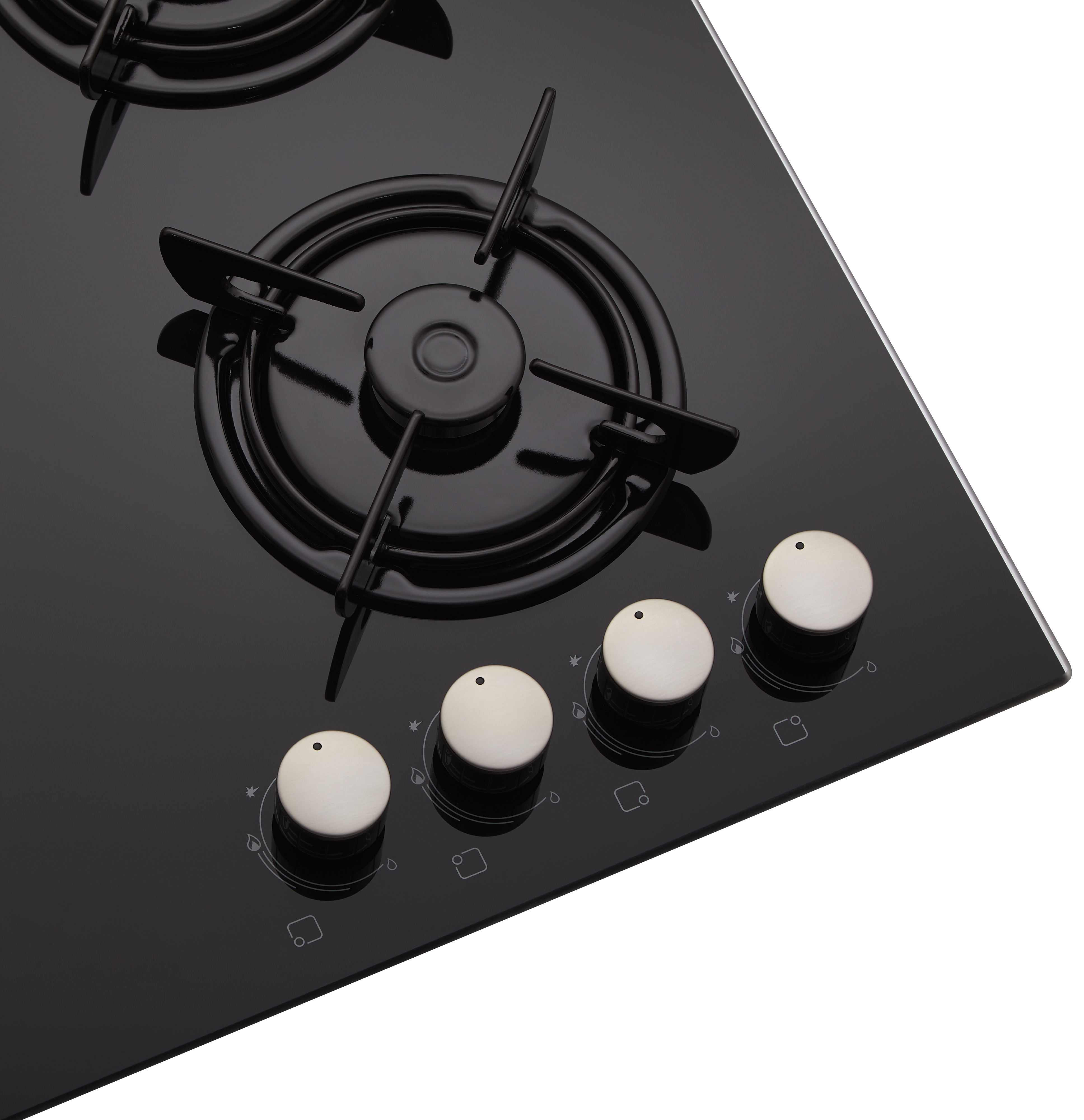 Електропідпал із керуванням у ручці робить користування приладом зручнішим. Для підвищення ергономічності приладу ручки керування розміщені в правій частині поверхні, на безпечній відстані від потужної конфорки. Ручки розміщені нижче рівня решіток, що унеможливлює їхній контакт із гарячим посудом і перешкоджає нагріванню.
