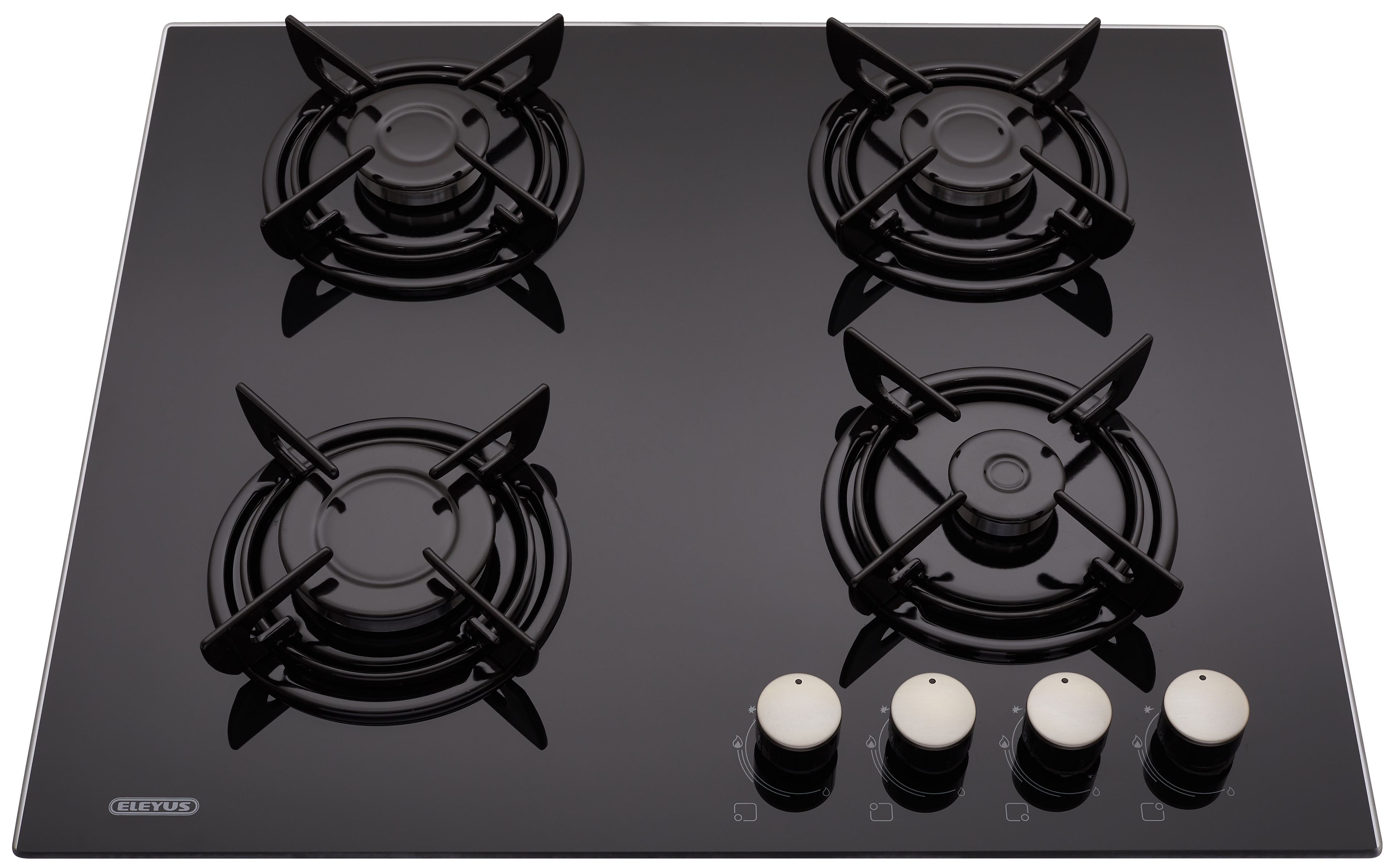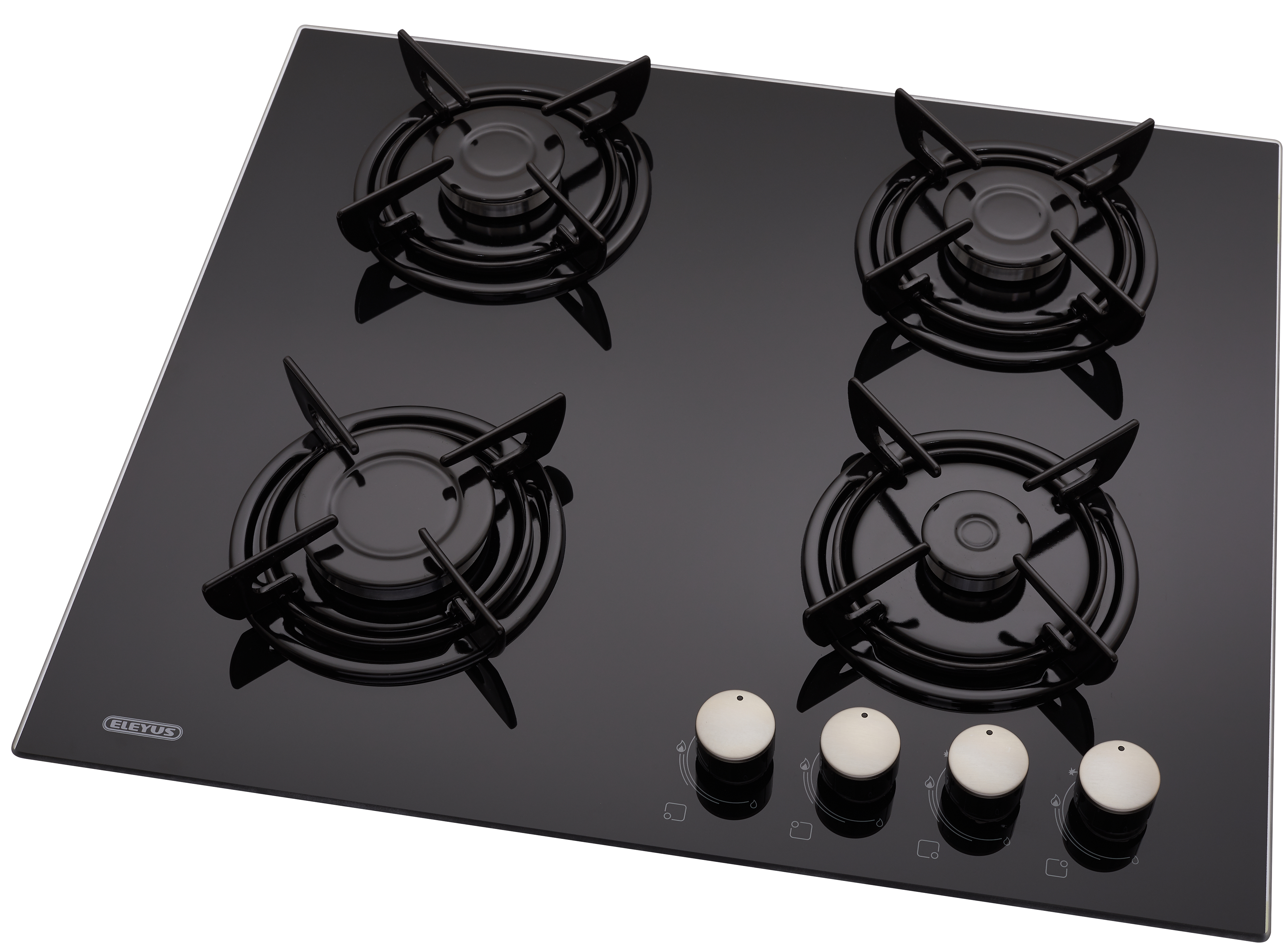 Сучасні газові поверхні ТМ ELEYUS — це гарантія безпеки вашого будинку. Газ-контроль вимикає подавання газу в разі випадкового загасання полум'я. Поверхня обладнана поворотними перемикачами з блокуванням, що унеможливлює випадкове вмикання приладу (для вмикання необхідно натиснути на перемикач і повернути його). Крім того, швидка конфорка розташована спереду ліворуч і частково висунута вперед, що дає використовувати посуд великих розмірів і захищає поверхню стіни від нагрівання Для підтвердження високої якості та безпеки у використанні всі газові варильні поверхні ТМ ELEYUS проходять чотирирівневий контроль герметичності з'єднань газової арматури на різних етапах виробництва.