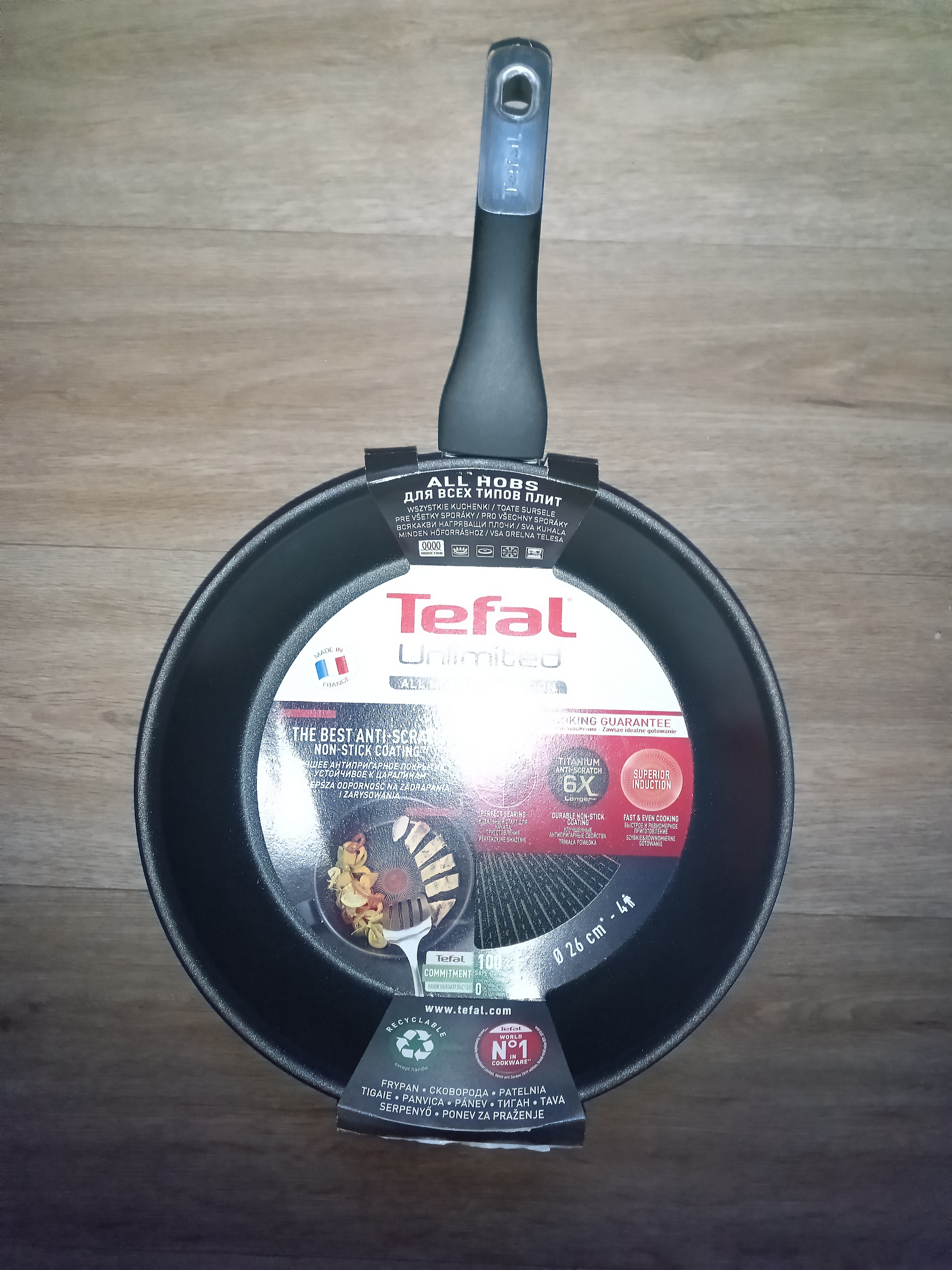 Жодного пригоряння і прилипання: правильний вибір сковороди може відіграти вирішальну роль. З цього приводу Tefal представляє посуд, створений, щоб витримувати екстремальні умови та вийти поза межі звичного приготування. Сковорода Tefal Unlimited забезпечує надзвичайну довговічність за бездоганних стандартів якості. Абсолютно нове антипригарне покриття Titanium стійке до подряпин, і слугує до 6 разів довше. Поєднуючи зручність антипригарного покриття й надзвичайну стійкість до подряпин, антипригарне покриття витримує навіть металеві аксесуари, а вдосконалена технологія Thermo-signal вказує на ідеальну температуру для початку приготування й гарантує ідеальну текстуру, колір і смак страв щодня. Завдяки надзвичайно великому індукційному диску та грубій основі, Thermo-Fusion +, сковорода швидше нагрівається й рівномірно розподіляє тепло всією сковородою. Підійміть свою кулінарну майстерність на абсолютно новий рівень із найкращим антипригарним посудом Tefal.