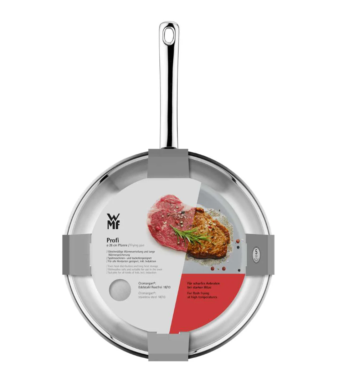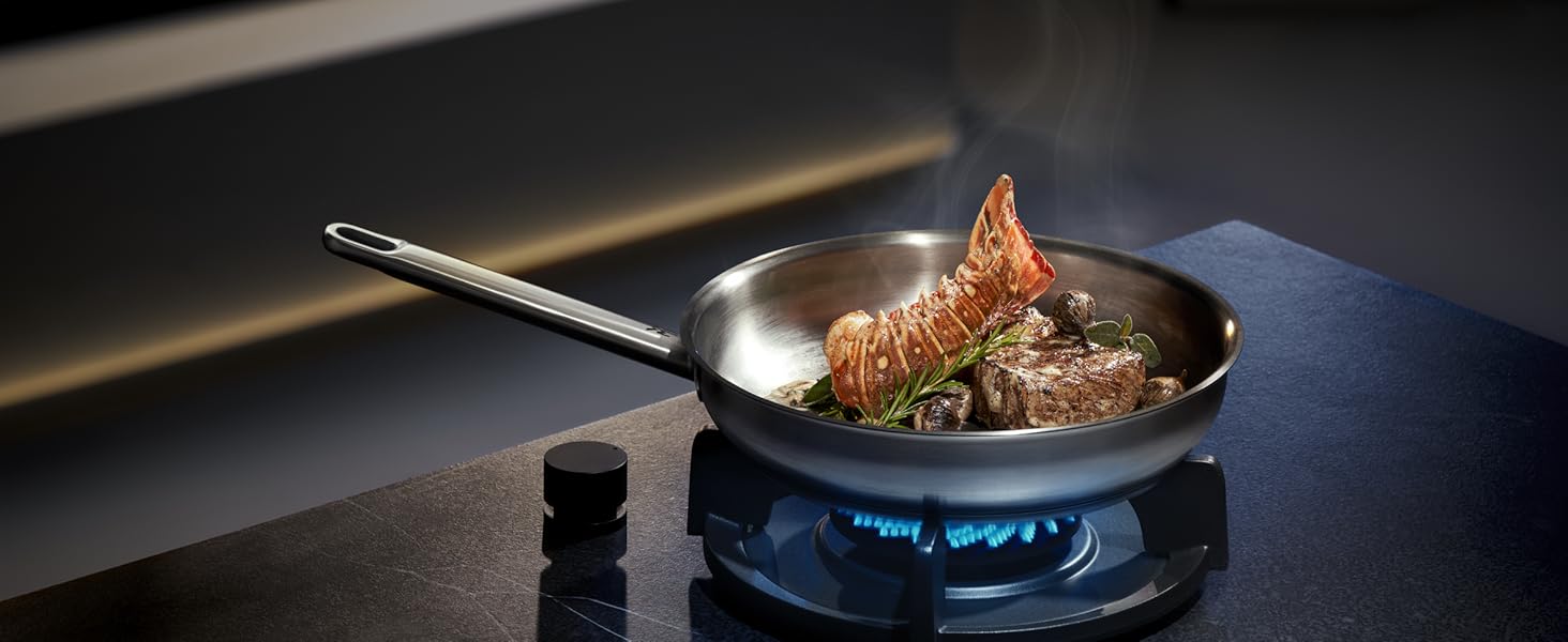 втілює все, що потрібно професіоналам на кухні. Завдяки Cromargan®: нержавіюча сталь 18/10 надзвичайно зносостійка та довговічна, стійка до харчових кислот, стабільна за розмірами, підходить для використання у духовці та дуже проста у догляді. Універсальна основа TransTherm® забезпечує оптимальне розподілення та зберігання тепла та дозволяє використовувати її на будь-якій плиті, включаючи індукційну.