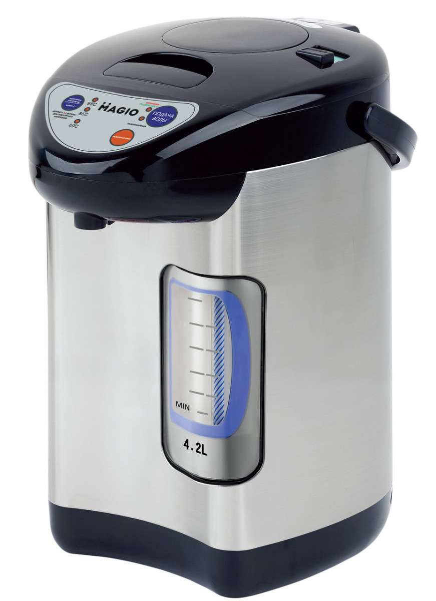 Для зручності користувача передбачено три способи подачі води: натиск чашкою, ручний режим та подача за допомогою електропомпи. Це робить процес користування термопотом максимально простим і комфортним, незалежно від ваших вподобань. Завдяки великому об’єму термопот Magio MG-965 ідеально підходить для великих родин або офісів, де гаряча вода потрібна у значній кількості.