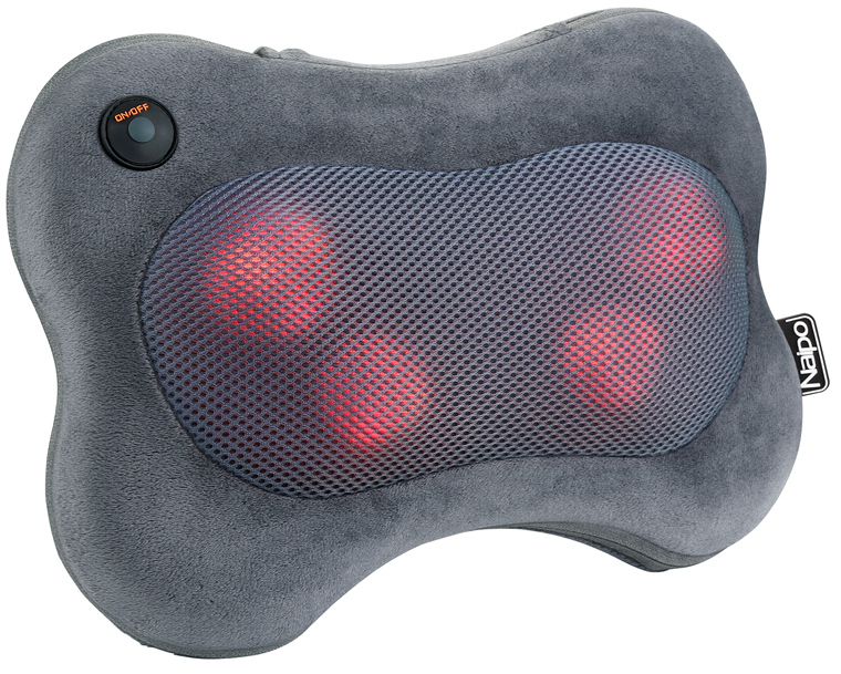 Naipo MGP-129M – масажна подушка для спини та шиї з 4 вузлами типу, що розминає, яка допоможе трохи розслабитися і зняти напругу в м'язах. Пристрій поєднує в собі техніки точкового масажу шіацу та прогрівання, що максимально посилює ефект. А спеціальний ремінець дає можливість закріпити аксесуар між сидінням та підголовником у машині, щоб використовувати у дорозі. Навіщо це потрібно? Тривале перебування в положенні сидіння або фізичні навантаження в спортзалі призводять до дискомфорту в м'язах. Масажер використовує популярну японську методику шіацу, інтенсивно розминаючи тіло чотирма вузлами. При цьому напрям обертання змінюється щохвилини, дозволяючи краще стимулювати кровопостачання та регенерацію клітин. Інфрачервоний підігрів Щоб посилити розслаблюючий ефект, можна активувати інфрачервоний обігрів масажних вузлів. У такому разі вони не тільки обертаються, а й нагріваються до температури 44 ° C, безпечної для тіла і водночас приємною для м'язів. Переключення між режимами виконується короткочасним натисканням кнопки живлення. Зручна форма Масажна подушка набула ергономічної форми з плавними вигинами, які зручно прилягають до тіла. А оздоблення ультрам'якою плюшевою тканиною забезпечує додатковий комфорт для шкіри. Крім того, для кріплення аксесуара між сидінням і підголовником в автомобілі передбачений спеціальний ремінець. Практичне живлення Пристрій підійде для використання вдома, так і в машині. А все завдяки тому, що масажна подушка укомплектована двома блоками живлення. Перший призначений для підключення до побутової електромережі, а другий до автомобільного гнізда прикурювача.