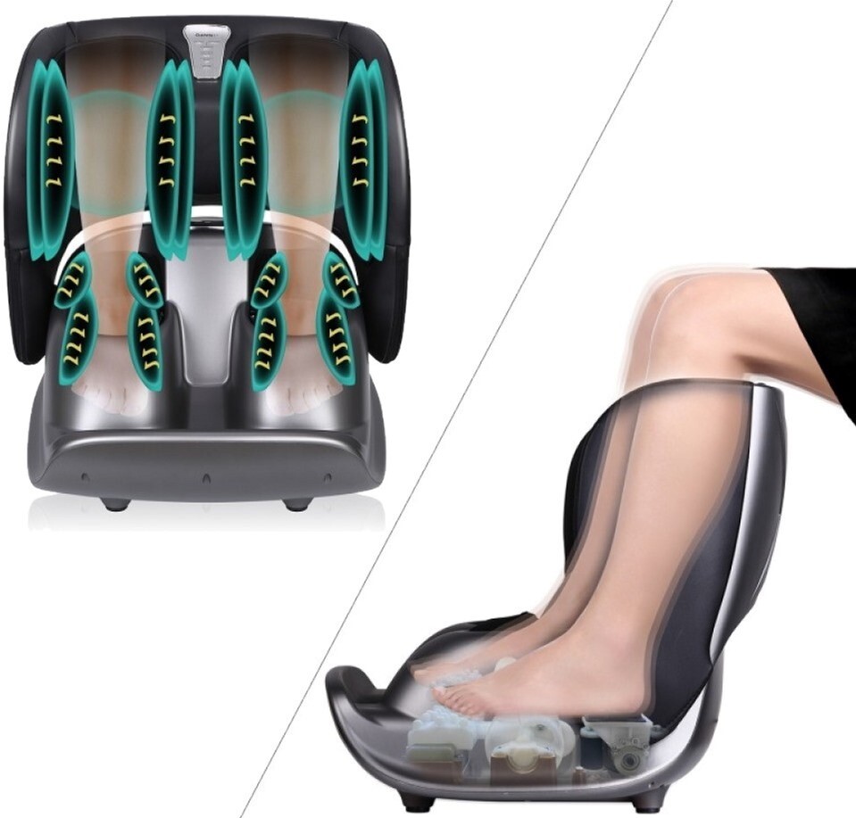 - Багатофункціональний масаж стоп Забезпечує масаж шіацу, розминання підошви та компресію повітря навколо стоп; функцію вібрації та нагрівання п'ят можна активувати окремо; всі ці функції поєднуються разом для забезпечення глибокого та розслабляючого масажу стоп.