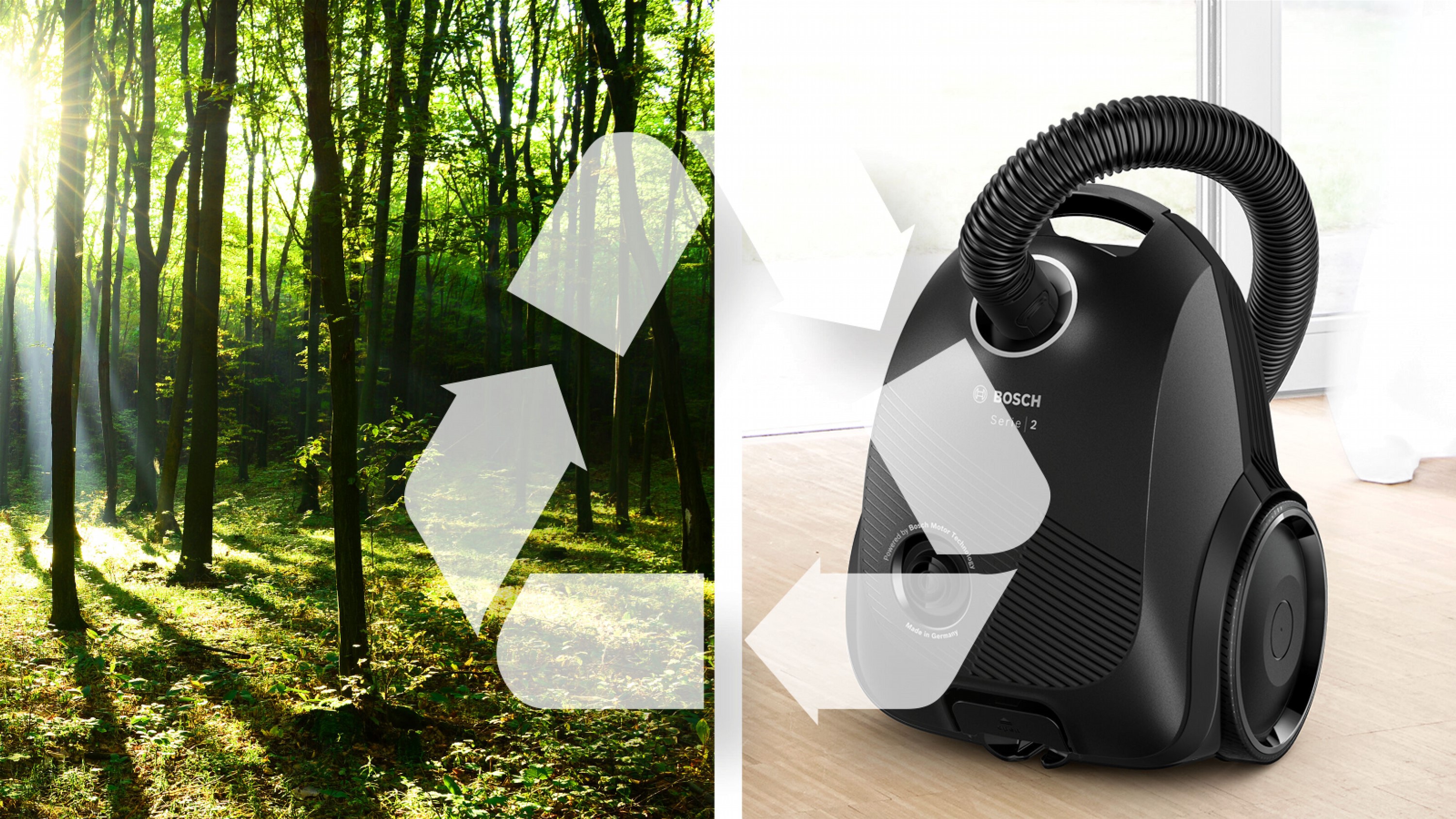 Нейтральний вплив виробництва пилососа на кліматПилосос виготовлений з переробленої сировини: до 64% пластикові деталі та 100% упаковкаСумісність:Набір пилозбірників BOSCH BBZ41FGALLHEPA-фільтр BOSCH BBZ156HFНабір пилозбірників BOSCH BBZ16GALL