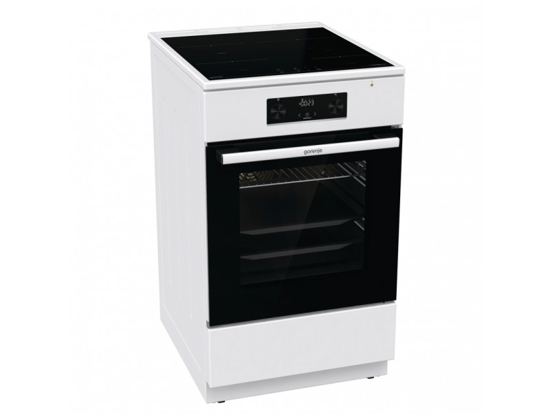 Електрична індукційна плита GEIT5C60WPG. Матеріал дверцят – скло, а матеріал панелі управління – фарбована сталь. Корисний об'єм плити становить 70л, а корисний об'єм становить 1260 см². Ця модель має електронний програматор IconLed, а також втоплені ручки для правильного налаштування режиму роботи. Також плита в комплектації має наступне додаткове обладнання: Частково висувні телескопічні однорівневі напрямні, глибокий емальований деко, дрібний емальований деко і грати. Ця модель має підвійні скляні дверцята, Compact Door та індикатор залишкового тепла що робить користування плитою інтуїтивно легкою.