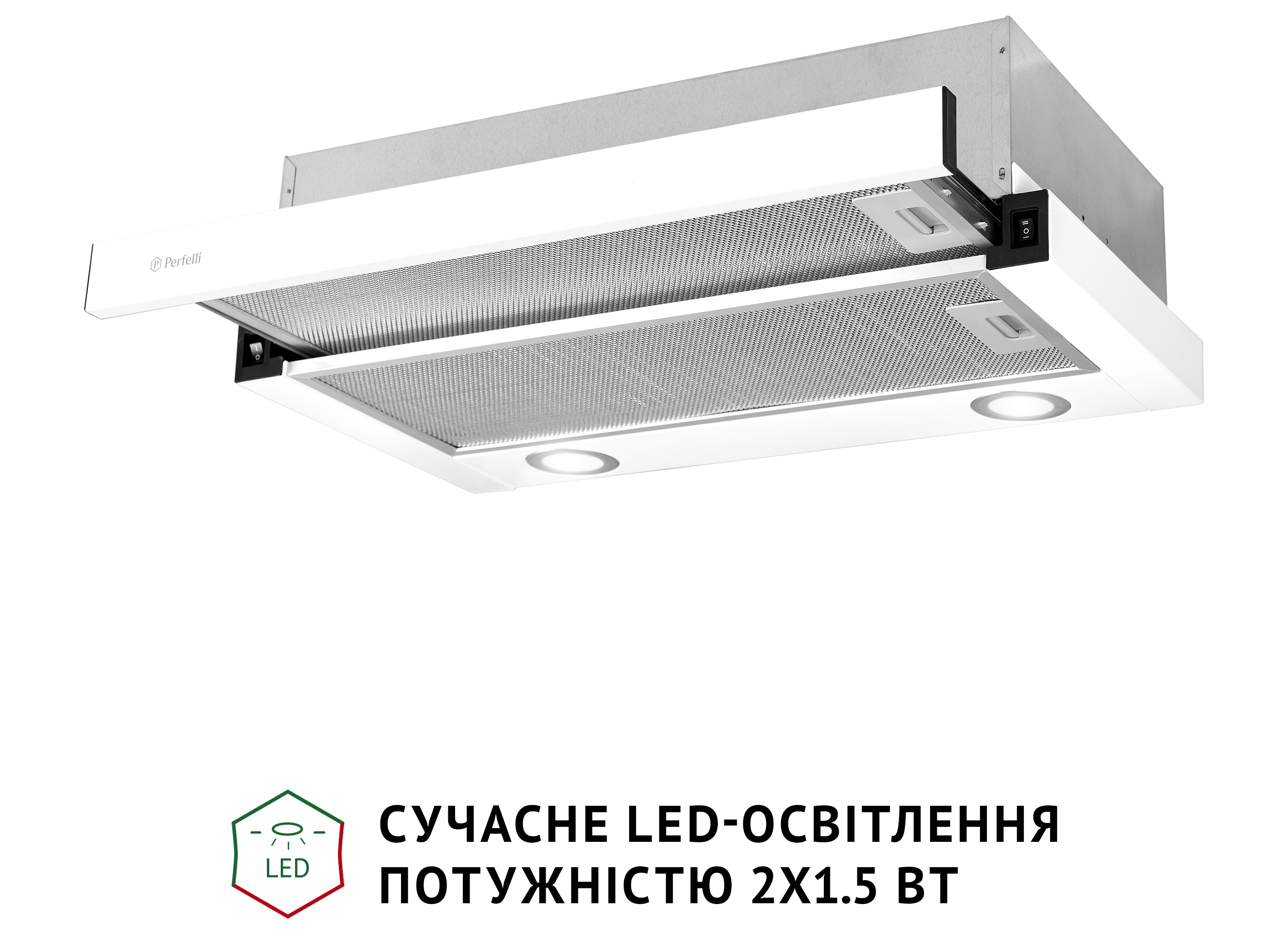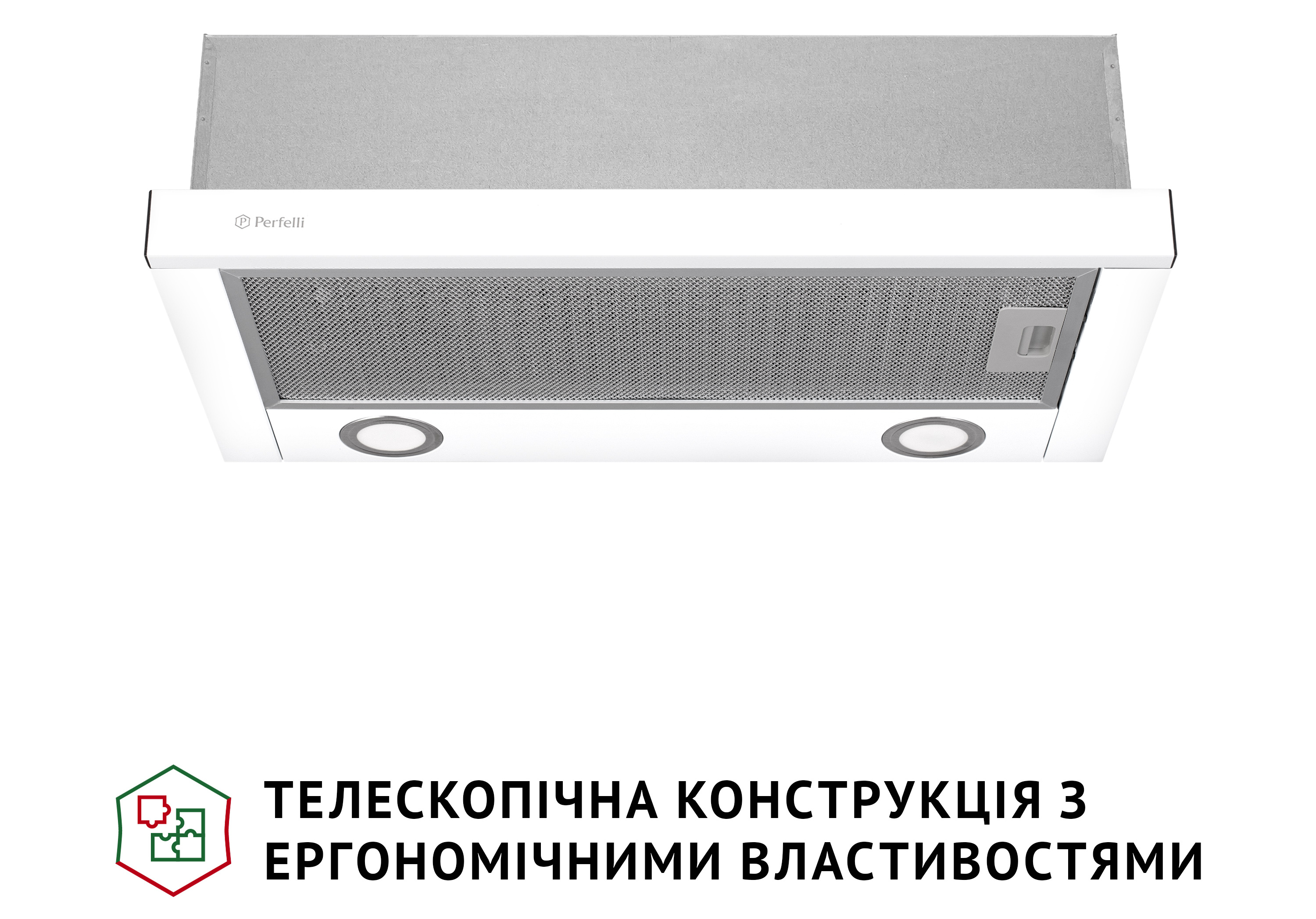 Телескопічна кухонна витяжка Perfelli TL 602 WH LED має ергономічні властивості та дозволяє раціонально використовувати простір над варильною поверхнею. Конфігурація моделі включає: