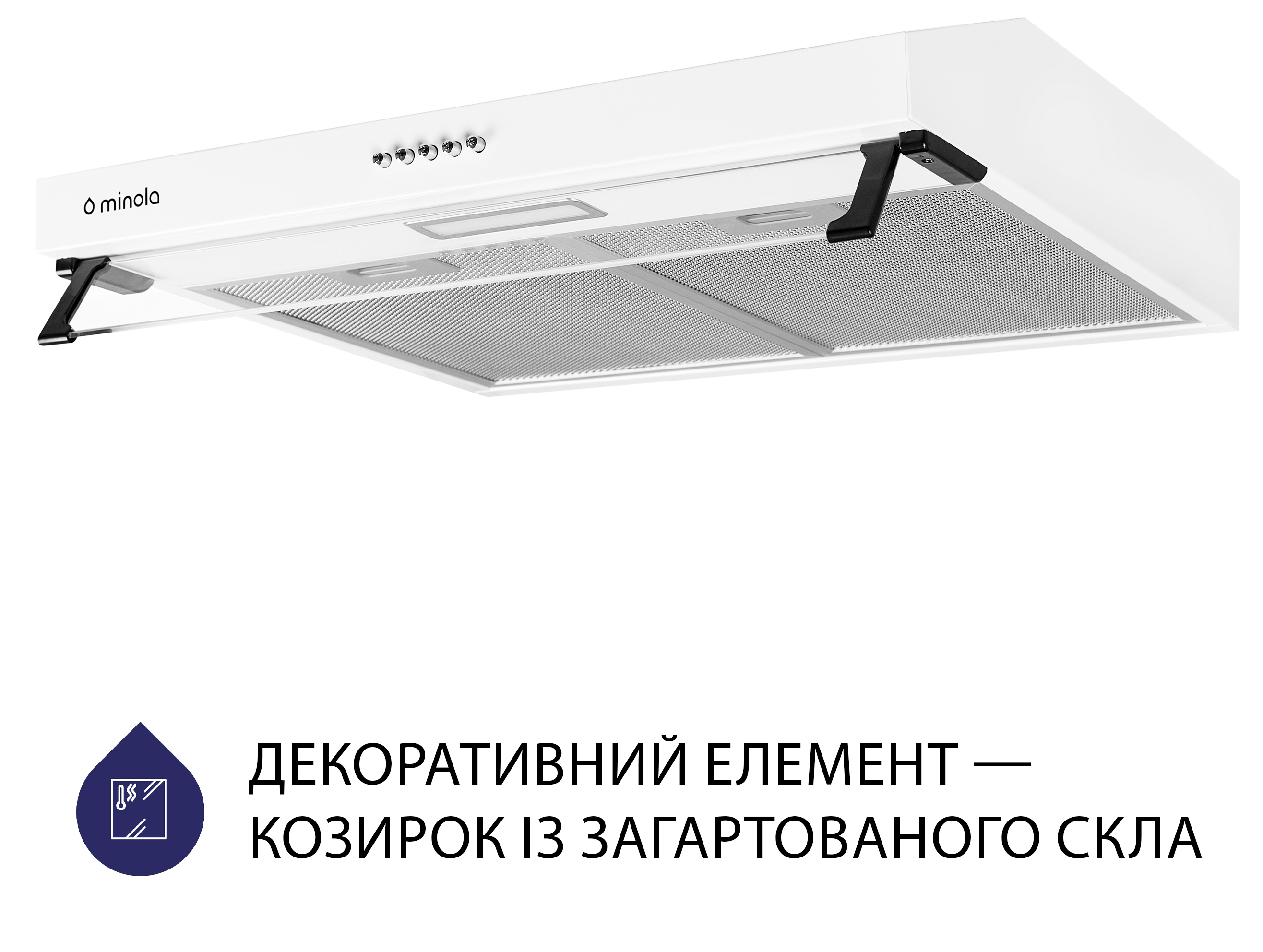 Витяжка Minola HPL 617 WH виготовлена з фарбованого металу. Цей матеріал, крім візуальної привабливості, дуже легкий у догляді та має високу стійкість до зовнішніх впливів.
