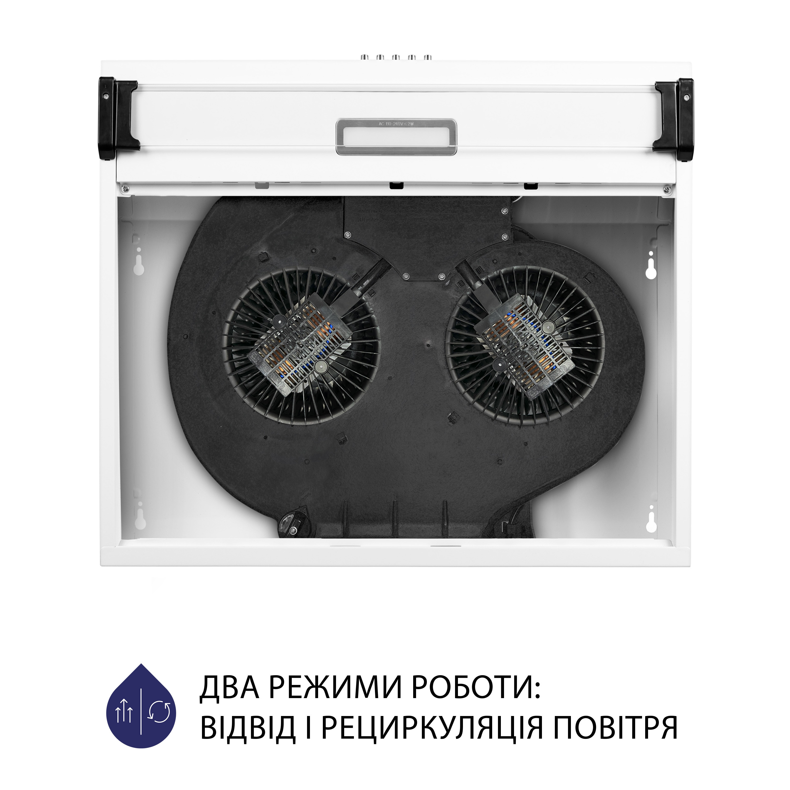 - Режим відведення – повітря виводиться назовні через вентиляційний отвір;