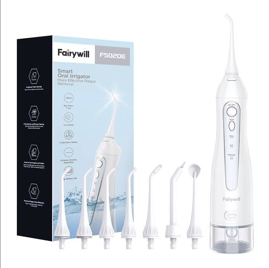 Електричний іригатор для зубів Fairywill 5020E - це професійний пристрій від відомої фірми FairyWill, створений для якісного чищення зубів та усування проблемного каменю та нальоту навіть у домашніх умовах.