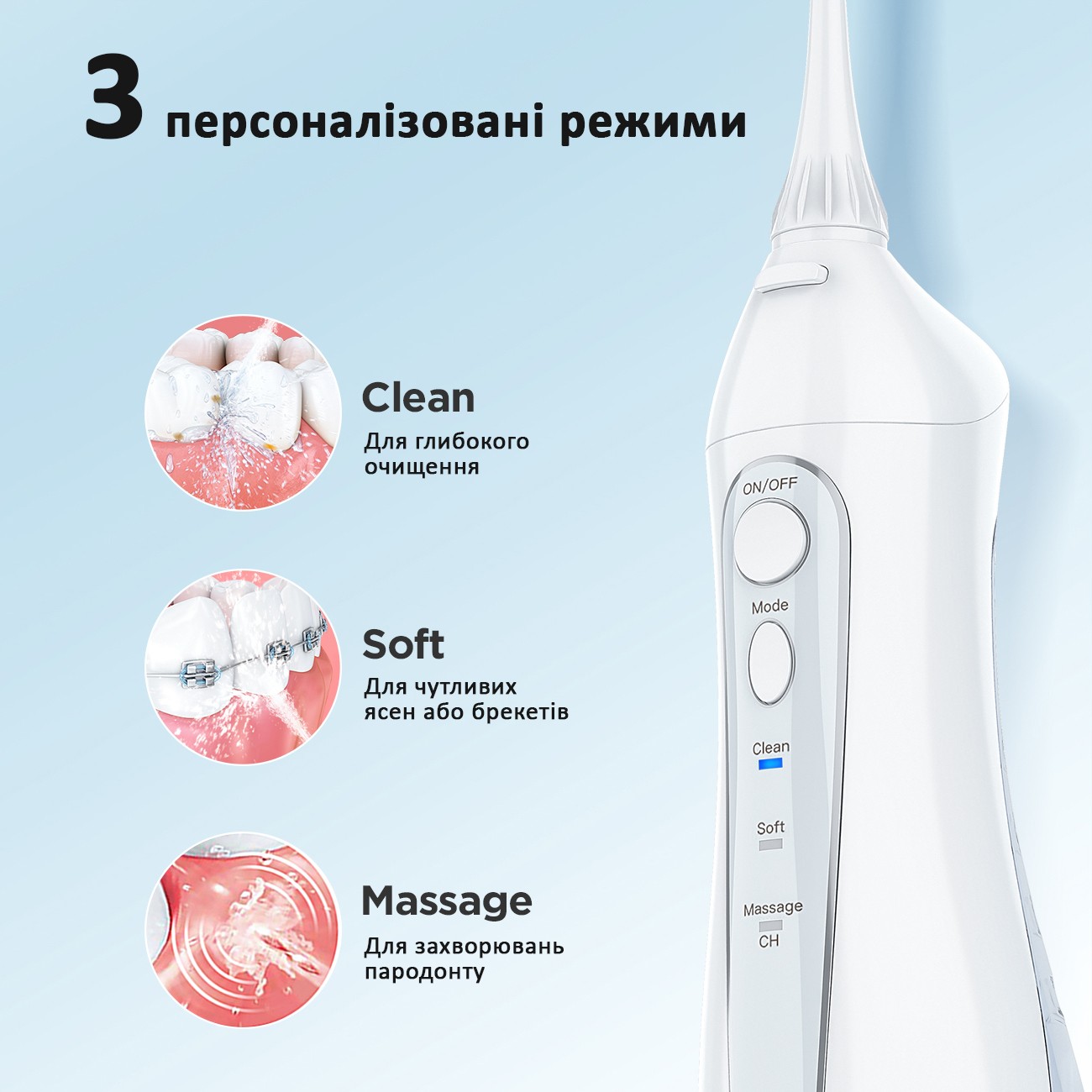 - Масаж: ідеально підходить для боротьби з пародонтитом або захворюванням ясен