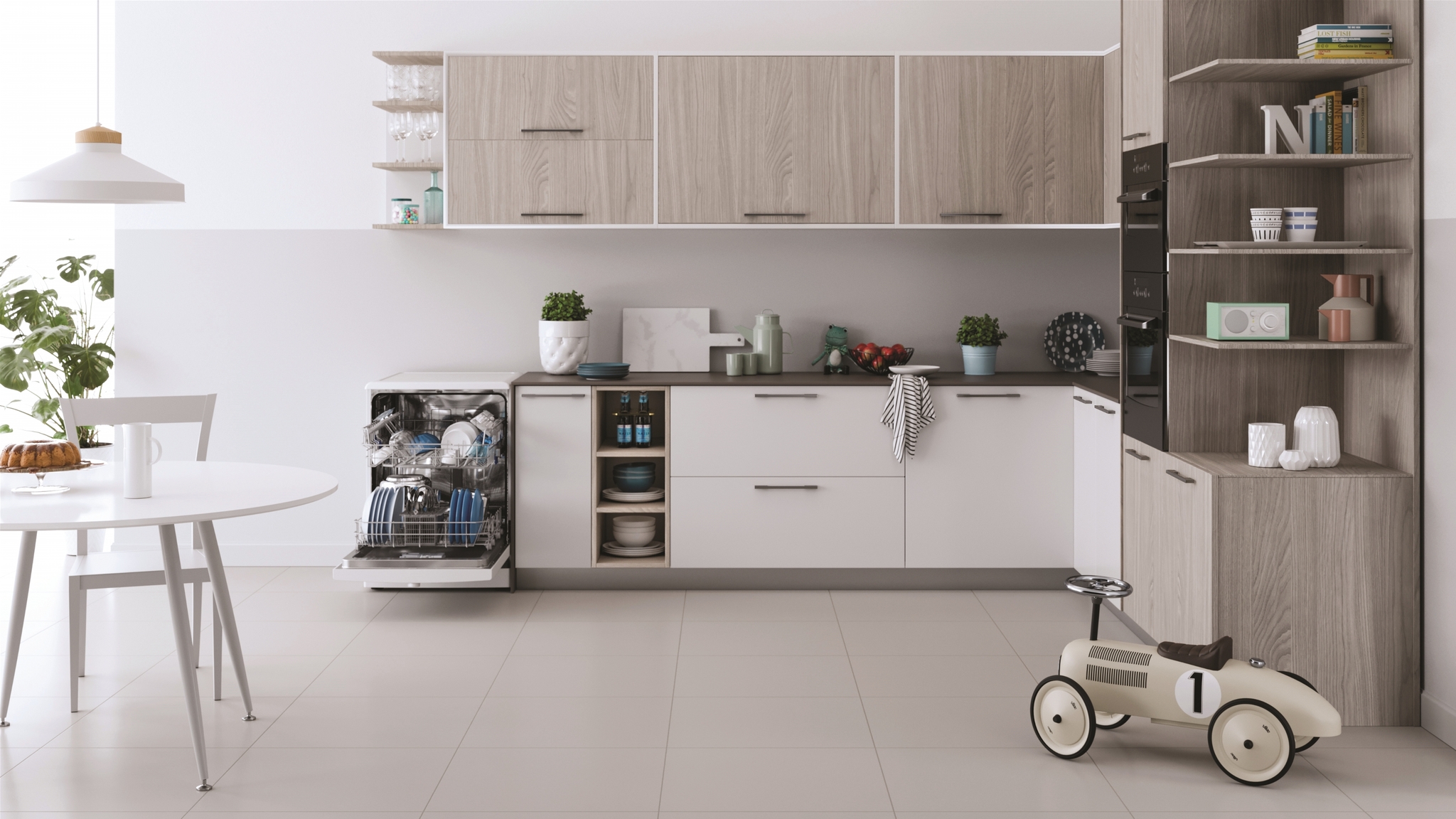 Вбудована посудомийна машина Indesit має вбудований дизайн, білий колір і регульовані ніжки, щоб ідеально вписуватися в вашу кухню. Вона має місткість до 14 комплектів посуду, що ідеально підходить для середніх сімей і зайнятих людей. За допомогою функції Push&Go ви можете просто натиснути одну кнопку і отримати чистий і сухий посуд за 85 хвилин. За допомогою функції Fast&Clean ви можете мати готовий посуд за менше ніж 28 хвилин.