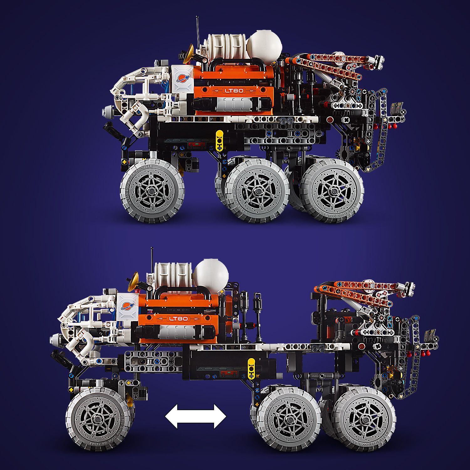 Підготуйтеся до своєї місії на Марс за допомогою конструктора LEGO Technic Марсохід команди дослідників. Випробуйте підвіску, яка дозволить марсоходу подорожувати марсіанськими ландшафтами. Спрямуйте його на потрібну позицію. За допомогою крана підійміть робота-марсохода, інструменти й паливний реактор. Огляньте житлові приміщення екіпажу або дослідіть обладнання, яке використовують космонавти, включно з контейнерами для зразків, ємностями з газом і водою.