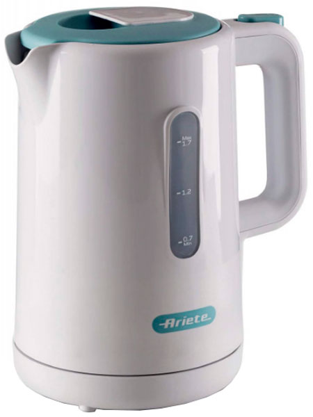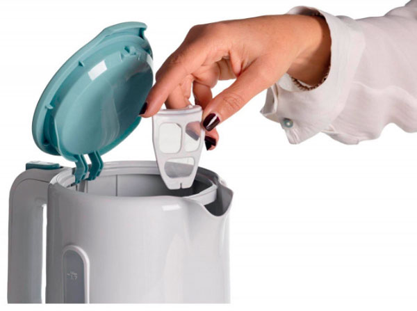 Електричний чайник для сніданку практичний і безпечний: він має автоматичне відключення при доведенні води до кипіння, захисну кришку і видимий рівень води. Усередині чайника під носиком знімний фільтр проти вапняного нальоту.