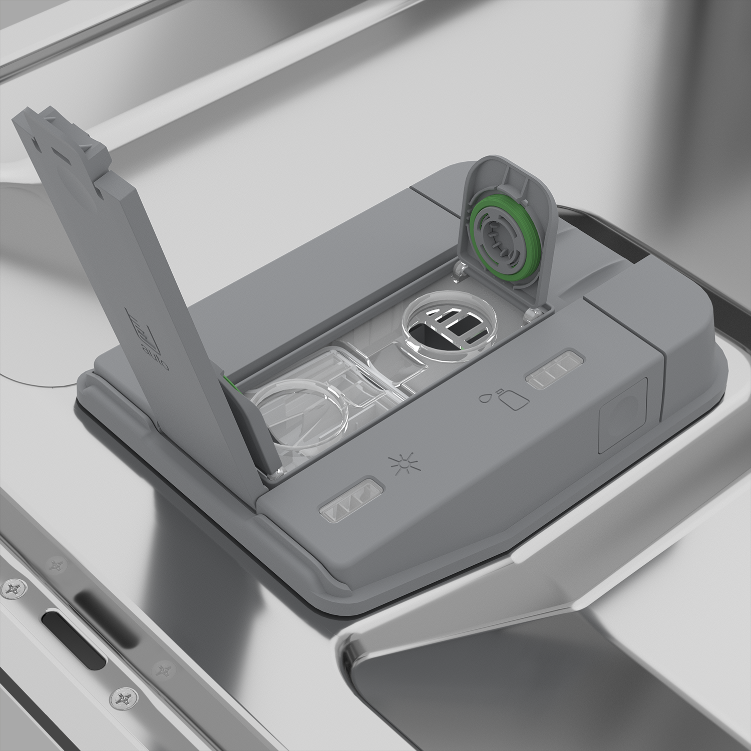 Мийний засіб, що раціонально використовується, і ефективніше миття. Забудьте про необхідність використовувати ретельно відміряну кількість миючого засобу або про необхідність додавати його перед кожним миттям! Просто налийте рідину в посудомийну машину, і AutoDose автоматично відміряє потрібну кількість рідини для місячного використання. Результат? Ідеально чистий посуд щоразу – без необхідності постійно доливати миючий засіб.