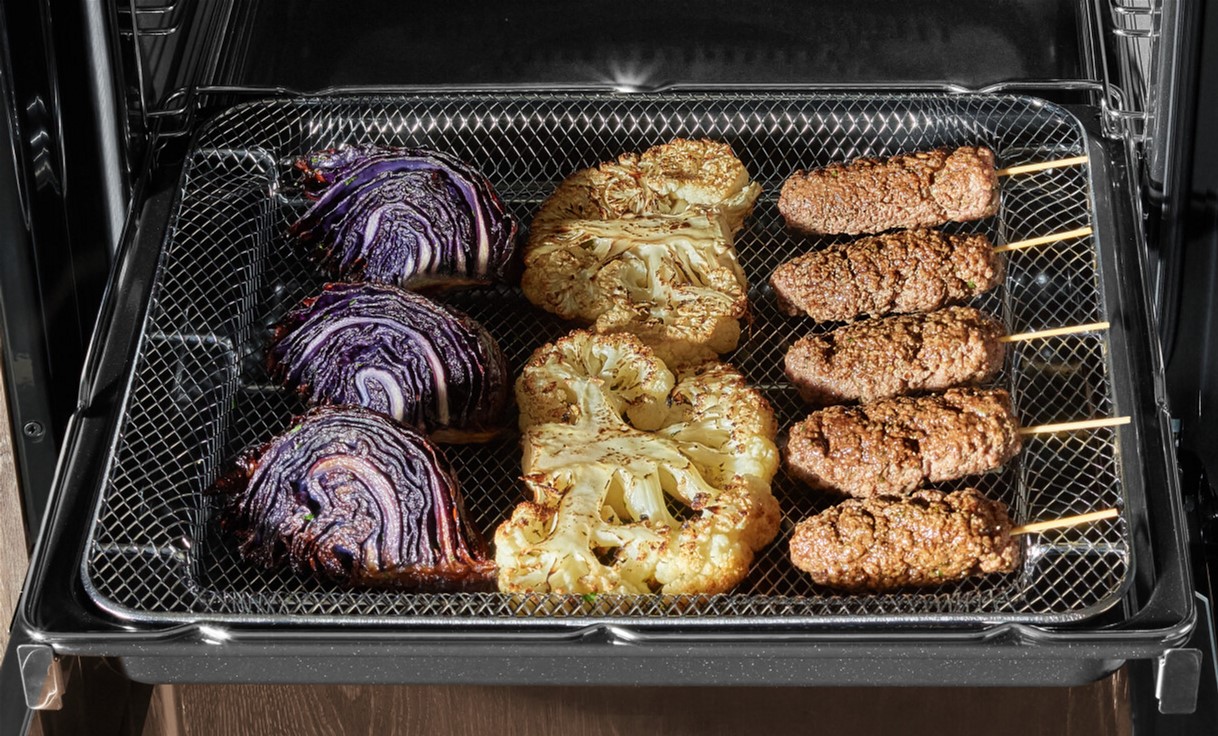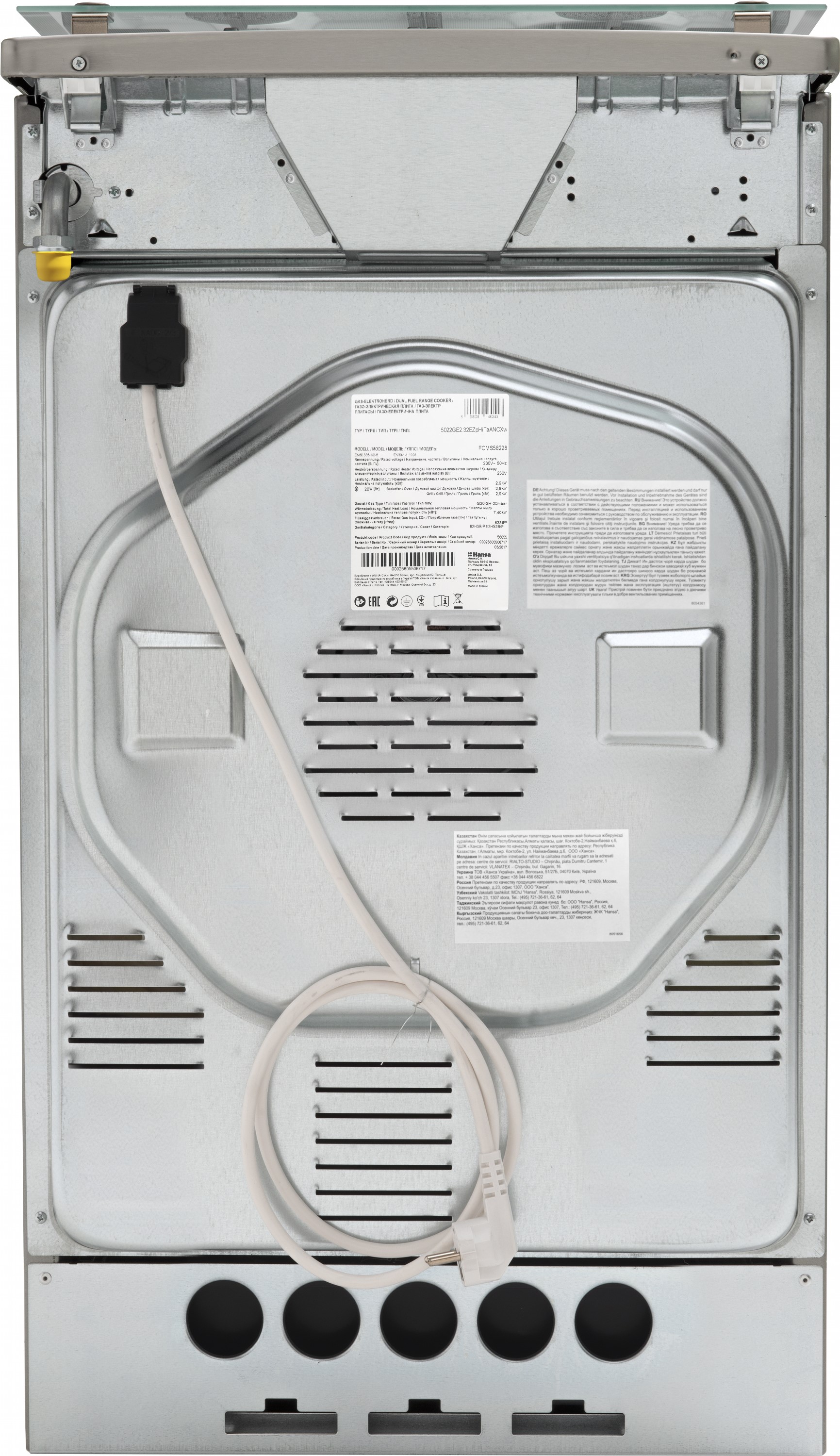 Плита має розміри 50х60 см і оснащена електричною духовкою об'ємом 65 літрів. Духовка здатна досягати максимальної температури 250°C, що дозволяє готувати різноманітні страви, а мінімальна температура 50°C підходить для делікатного запікання. Потужність гриля становить 2000 Вт, що забезпечує швидке і рівномірне приготування. Для зручності приготування на дверцятах духовки розміщені рецепти.
