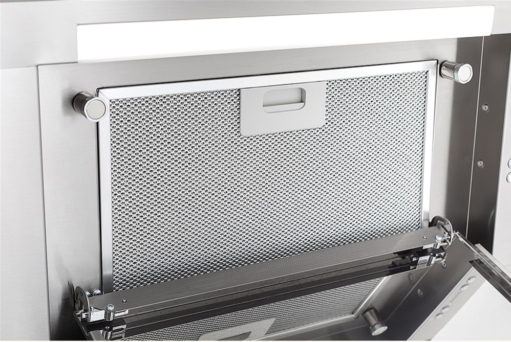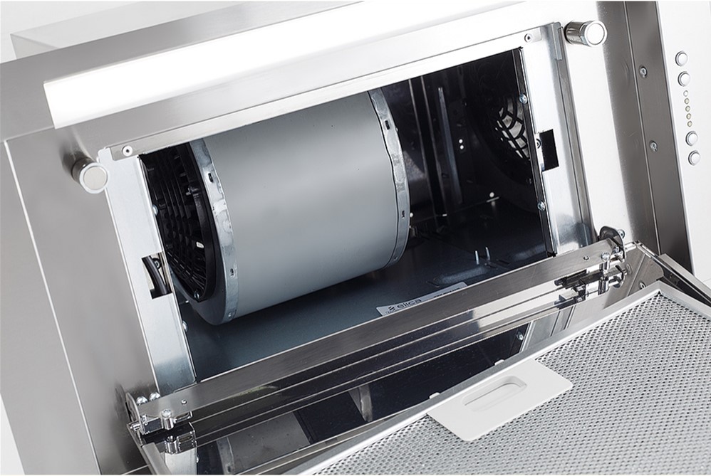 Витяжка оснащена алюмінієвим жировим фільтром та підтримує встановлення вугільного фільтра (код CFC0140343), який можна замовити окремо. Вона пропонує чотири швидкості роботи, включаючи турборежим для інтенсивного очищення повітря. Високотехнологічна турбіна забезпечує стабільну та ефективну роботу.