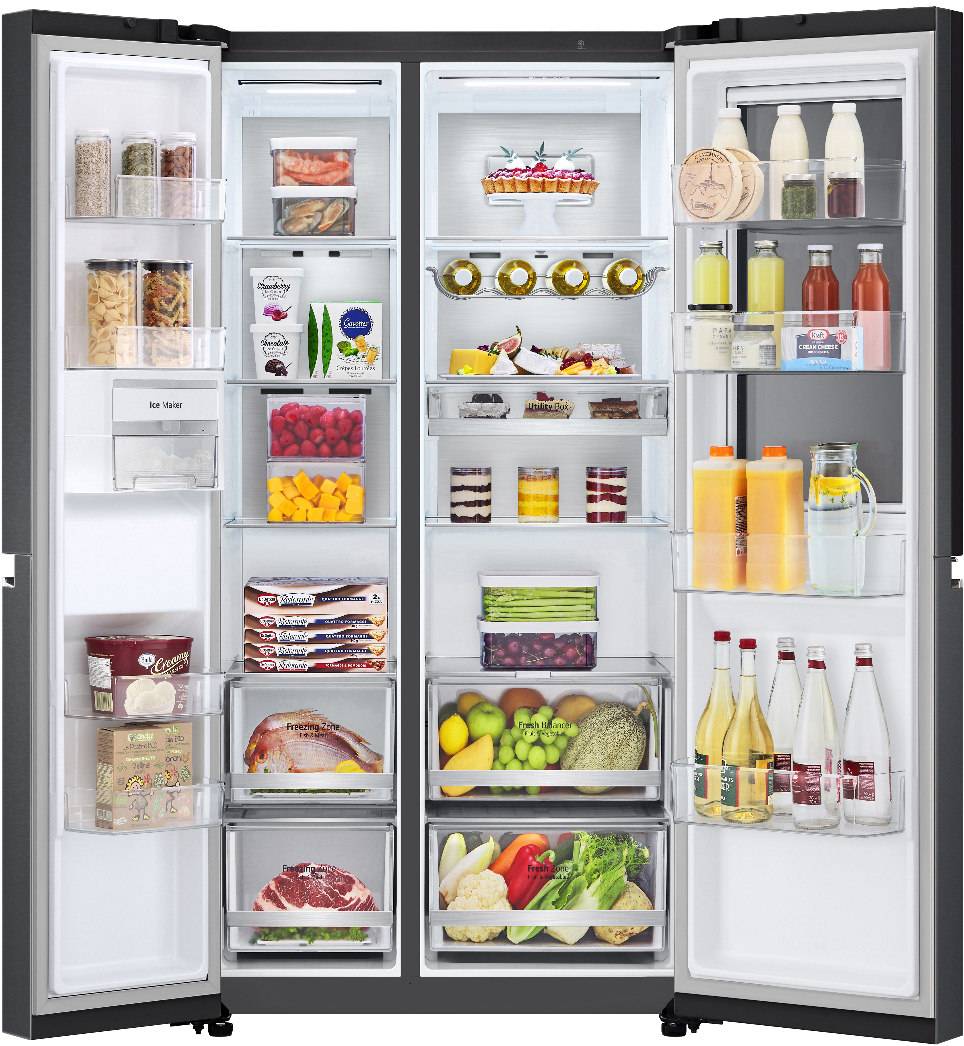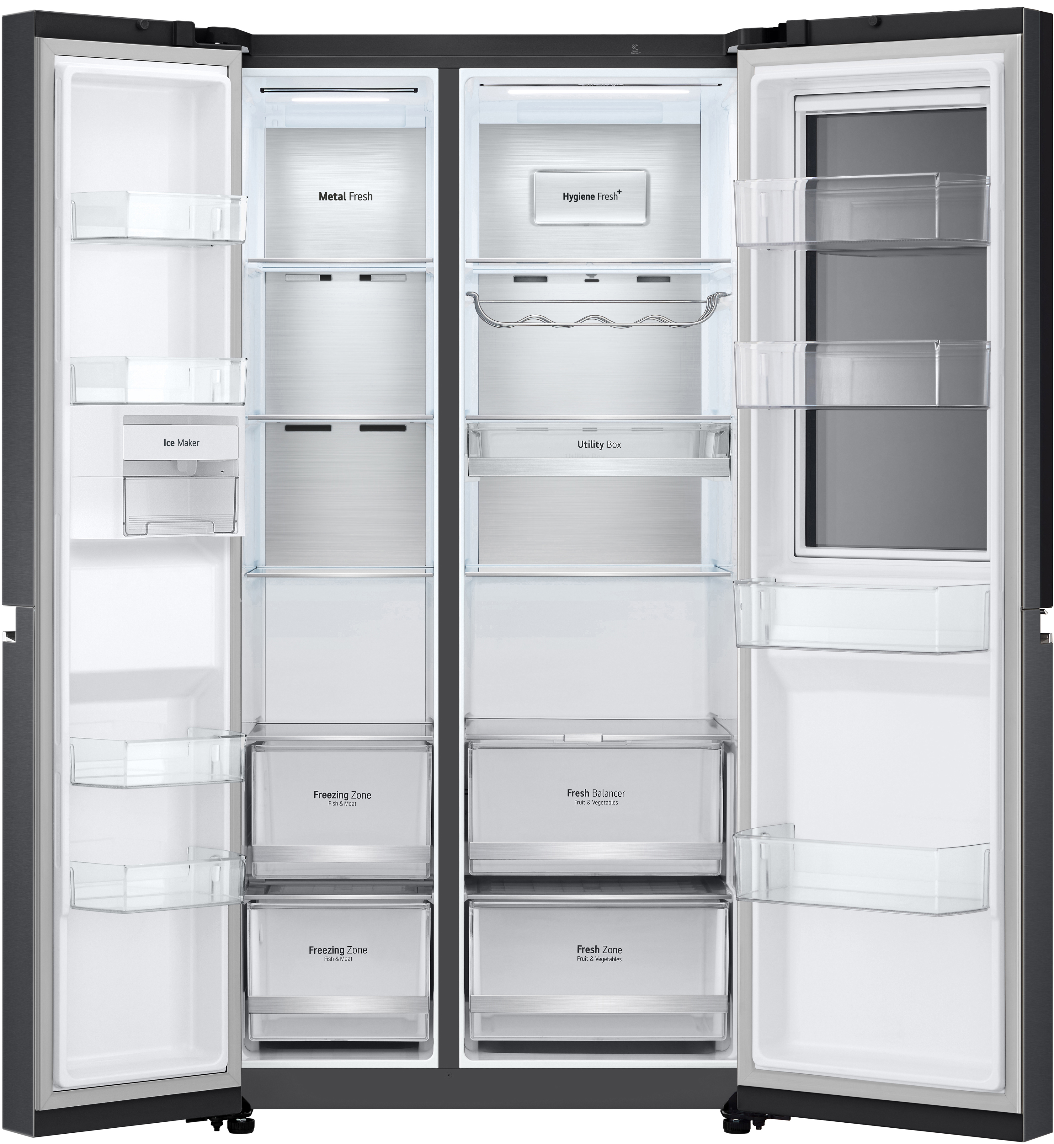 Модель пропонує величезний об'єм у 647 літрів, що надає достатньо місця для зберігання їжі всієї родини. Завдяки технології Metal Fresh, металева пластина на задній стінці підсилює ефект охолодження та надає елегантності інтер'єру. Крім цього, FRESHBalancer™ дозволяє підтримувати оптимальну вологість для фруктів і овочів, що гарантує їхню свіжість на довший термін.