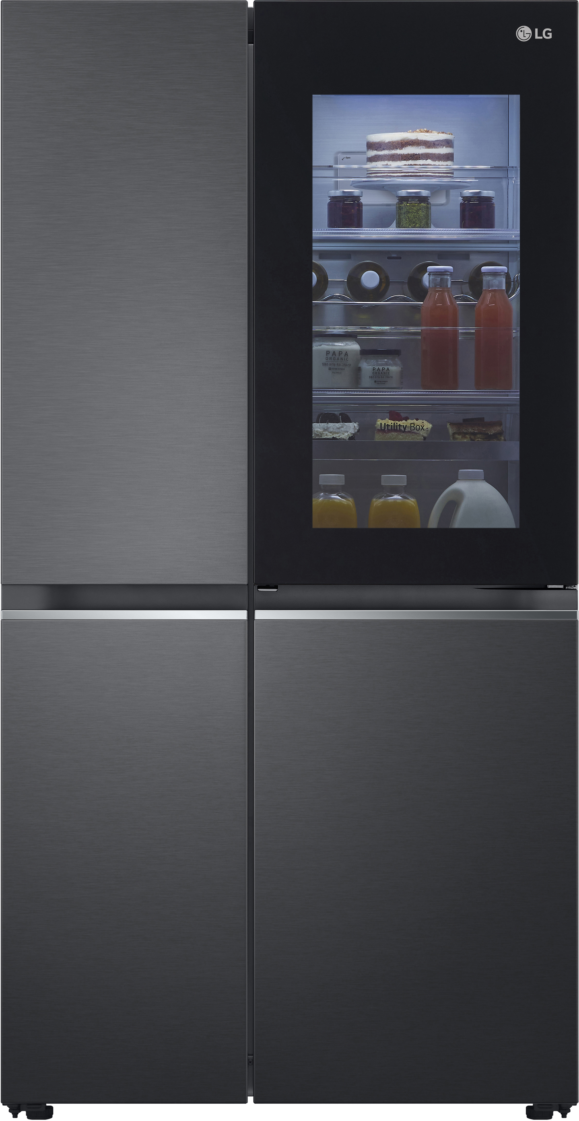 Side-by-side холодильник LG GC-Q257CBFV - це поєднання інноваційного дизайну та передових технологій для зручного зберігання продуктів. Однією з ключових функцій є InstaView Door-in-Door™: панель з низькоемісійного скла стає прозорою при подвійному стуку, що дозволяє перевіряти вміст без відкриття дверей, запобігаючи втраті холодного повітря. Інноваційна система DoorCooling+™ забезпечує швидше охолодження на 19,7%, зберігаючи свіжість продуктів завдяки вентиляційним отворам на передній панелі. Розроблений з урахуванням преміального дизайну, холодильник вражає естетикою та зручністю у щоденному використанні.