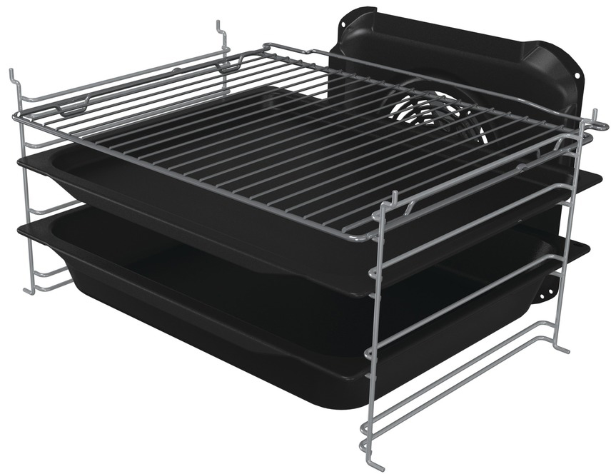 Духовка має інноваційну форму "Homemade" і знімні напрямні, що полегшують приготування. Металева кришка варильної поверхні та два скла в дверцятах духовки покращують теплоізоляцію. Вбудований індикатор нагрівання і таймер допомагають контролювати процес приготування.