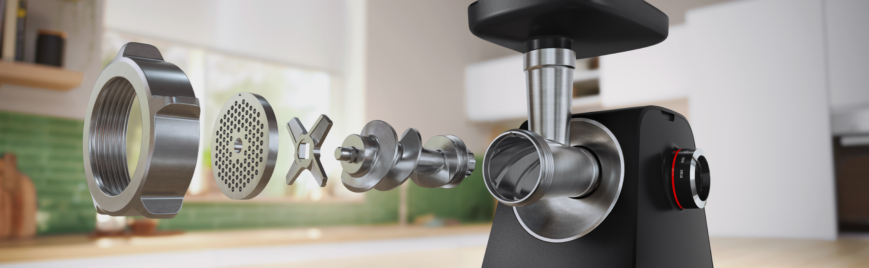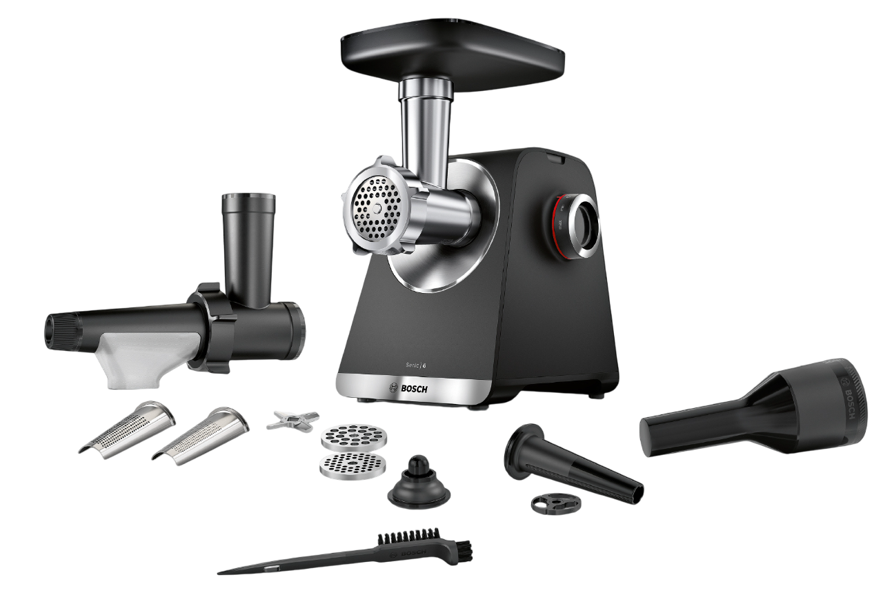 - Легке очищення: поверхню м'ясорубки швидко і легко протирати після роботи. Крім того, більшість аксесуарів, включаючи диски та ніж, можна мити в посудомийній машині.