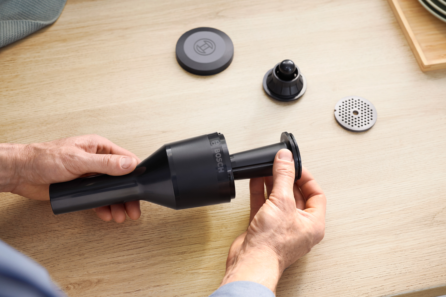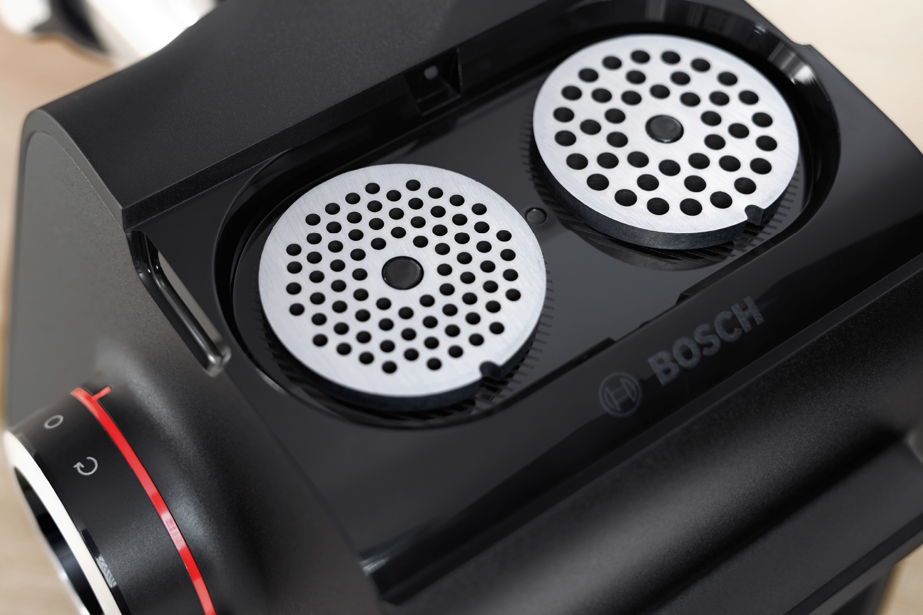 - Диски для подрібнення різних розмірів: перфоровані диски з нержавіючої сталі (3 мм, 4,5 мм і 8 мм) забезпечують легке подрібнення сирого або вареного м'яса, риби та сиру. Також можна обробити картоплю на вареники або приготувати деруни та подрібнити підсушені булочки в панірувальні сухарі для використання в інших стравах. Можна мити в посудомийній машині.
