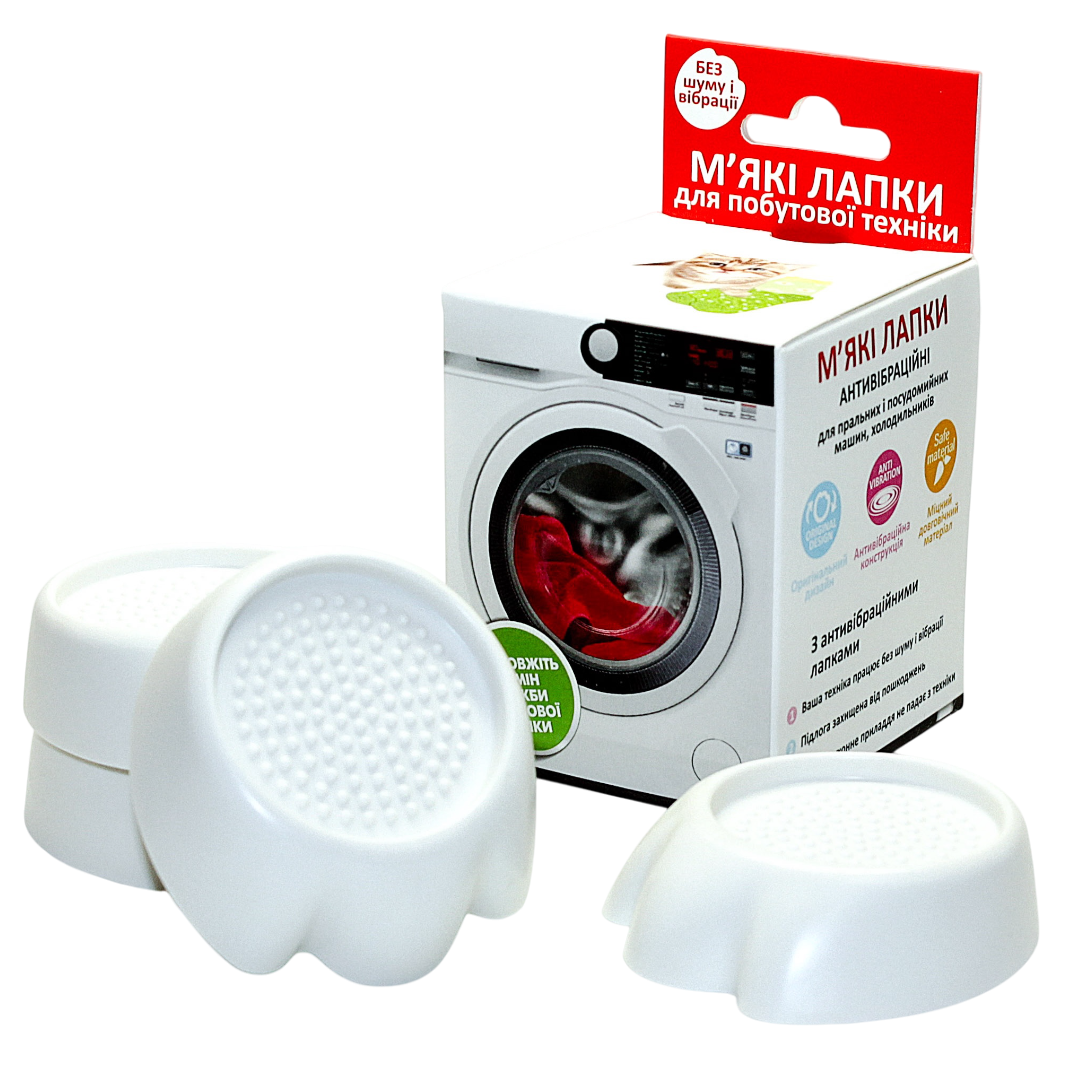 Комплект антивібраційних ніжок SAVITEL SV-1 підходить для всіх типів пральних, сушильних, посудомийних машин, холодильників, а також для газових і електроплит, іншої техніки та меблів. М’які ніжки чудово гасять різного роду вібрації пральної машини. Просто підкладіть їх під машинку і забудьте про проблеми. Ніжки виготовлені з м’якого ПВХ, який, на відміну від гуми, не ковзає. Спеціальні ребра жорсткості ефективно поглинають і знижують вібрацію, а привабливий дизайн ніжок викликає усмішку у кожного.