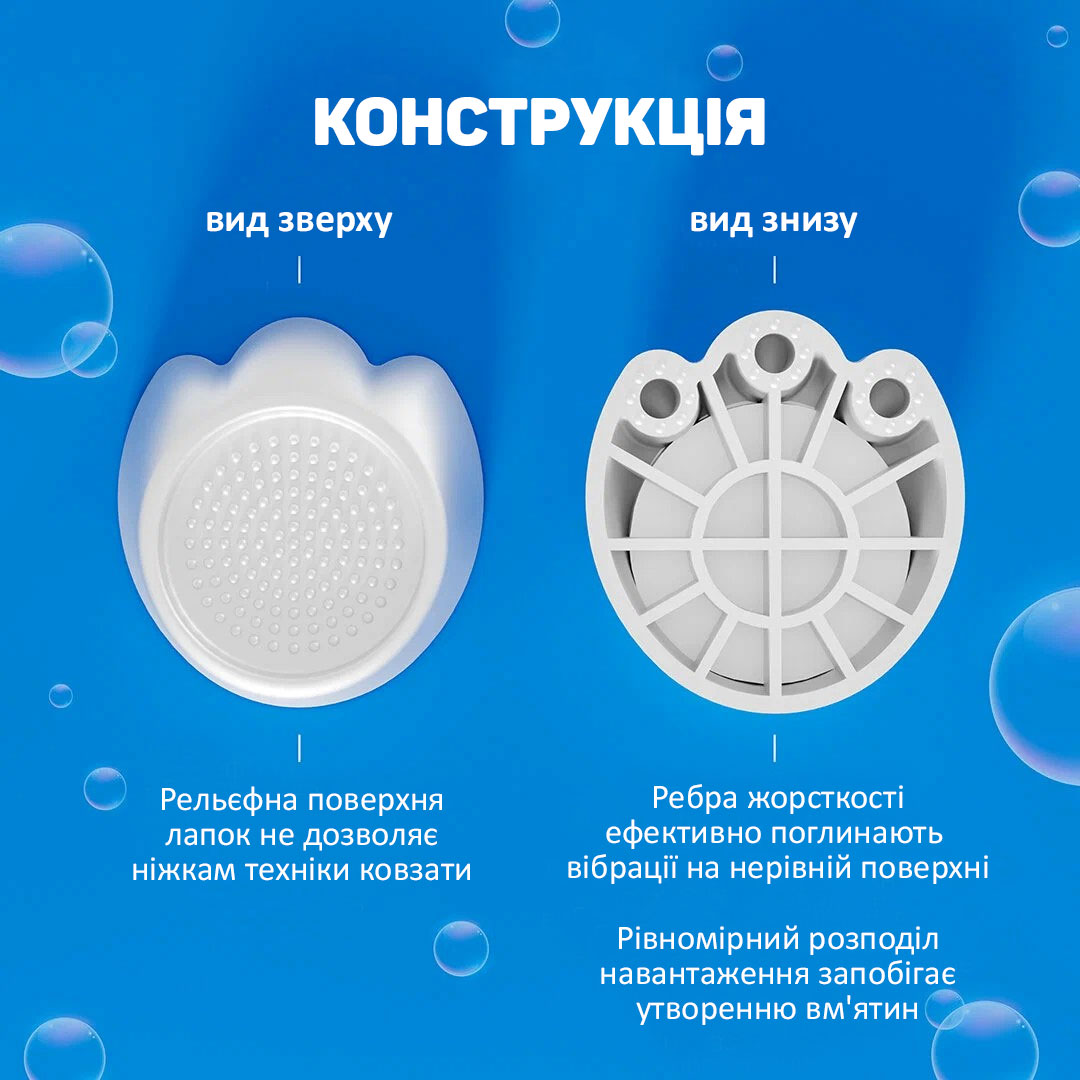 - Згладжують нерівності підлоги, не дають машині ковзати, зменшують її коливання під час віджиму.