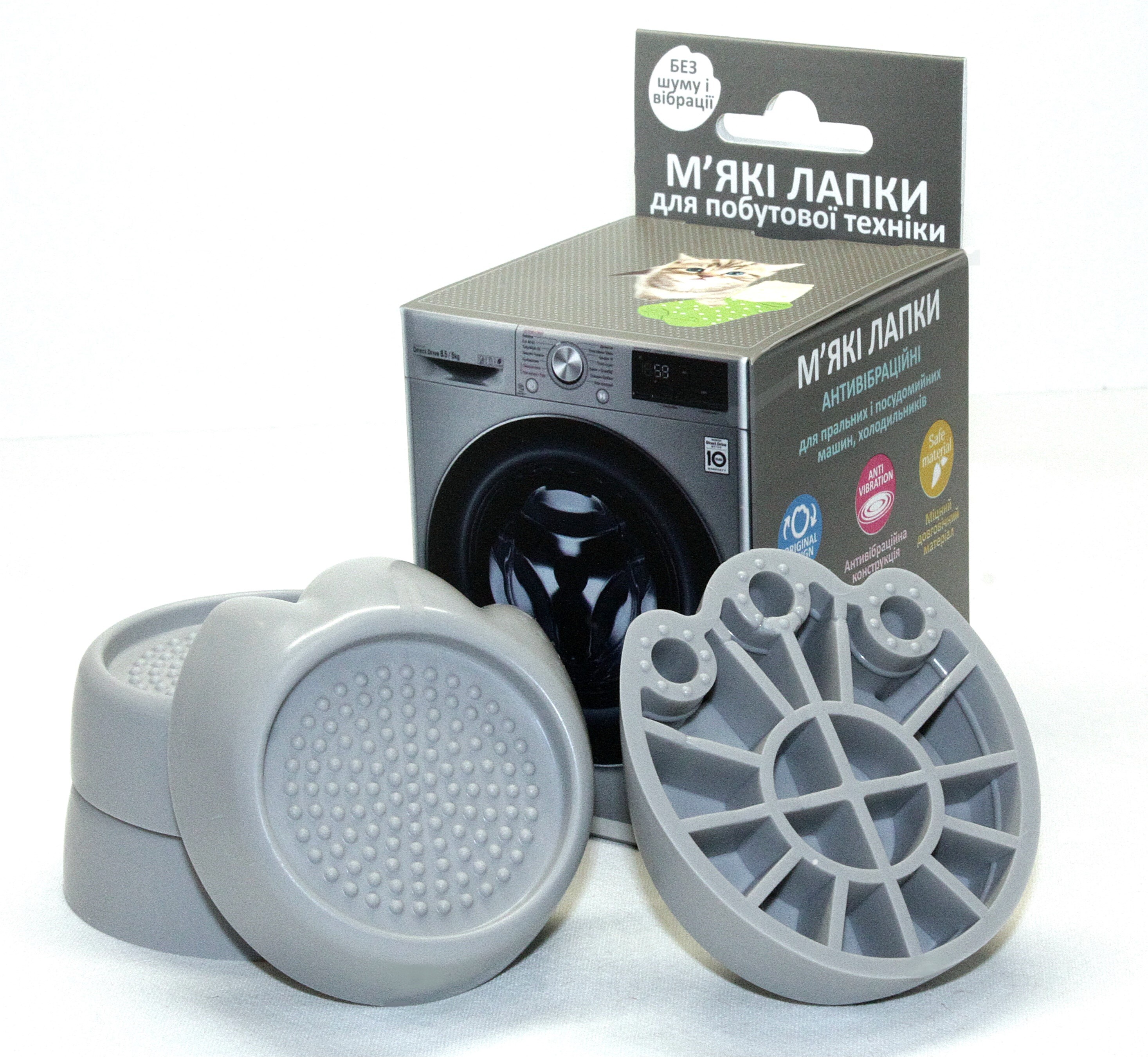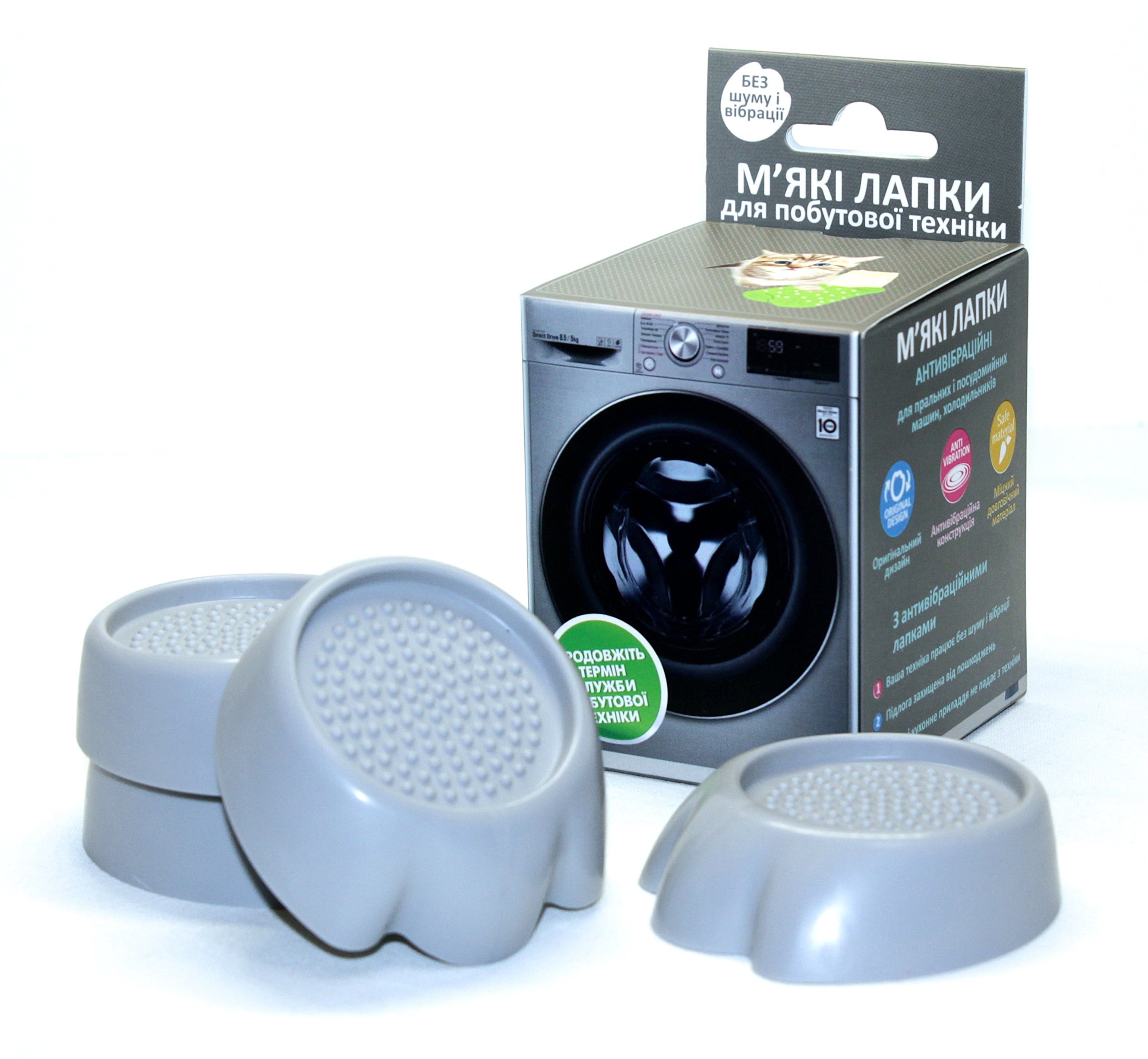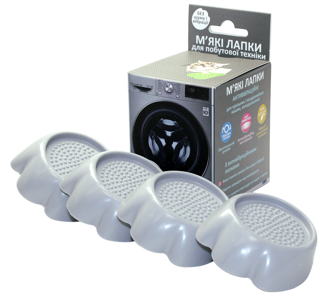 - Захищають підлогу від подряпин і запобігають падінню речей з поверхні пральної чи сушильної машини.