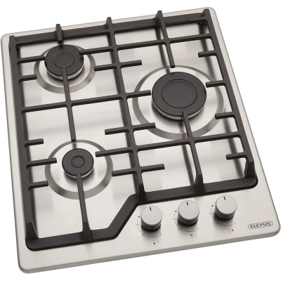 Тип поверхні - газова, нержавіюча сталь, кількість конфорок - 3, Задня ліва 1.7 кВт, Передня ліва 55 мм/ 1 кВт, права: потужністю 3 кВт, Управління - механічне, Газ-контроль - є, Електропідпал - так, Матеріал решіток - чавун, бутан/зріджений, 220 В, Розміри ніші для вбудовування - 5 х 41 х 48 см, 7.5 кг, нержавіюча сталь