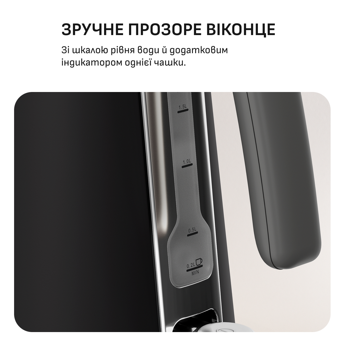 Вбудована шкала рівня води дає змогу точно визначити об'єм води, а індикатор однієї чашки допоможе закип'ятити рівно стільки, скільки вам потрібно.