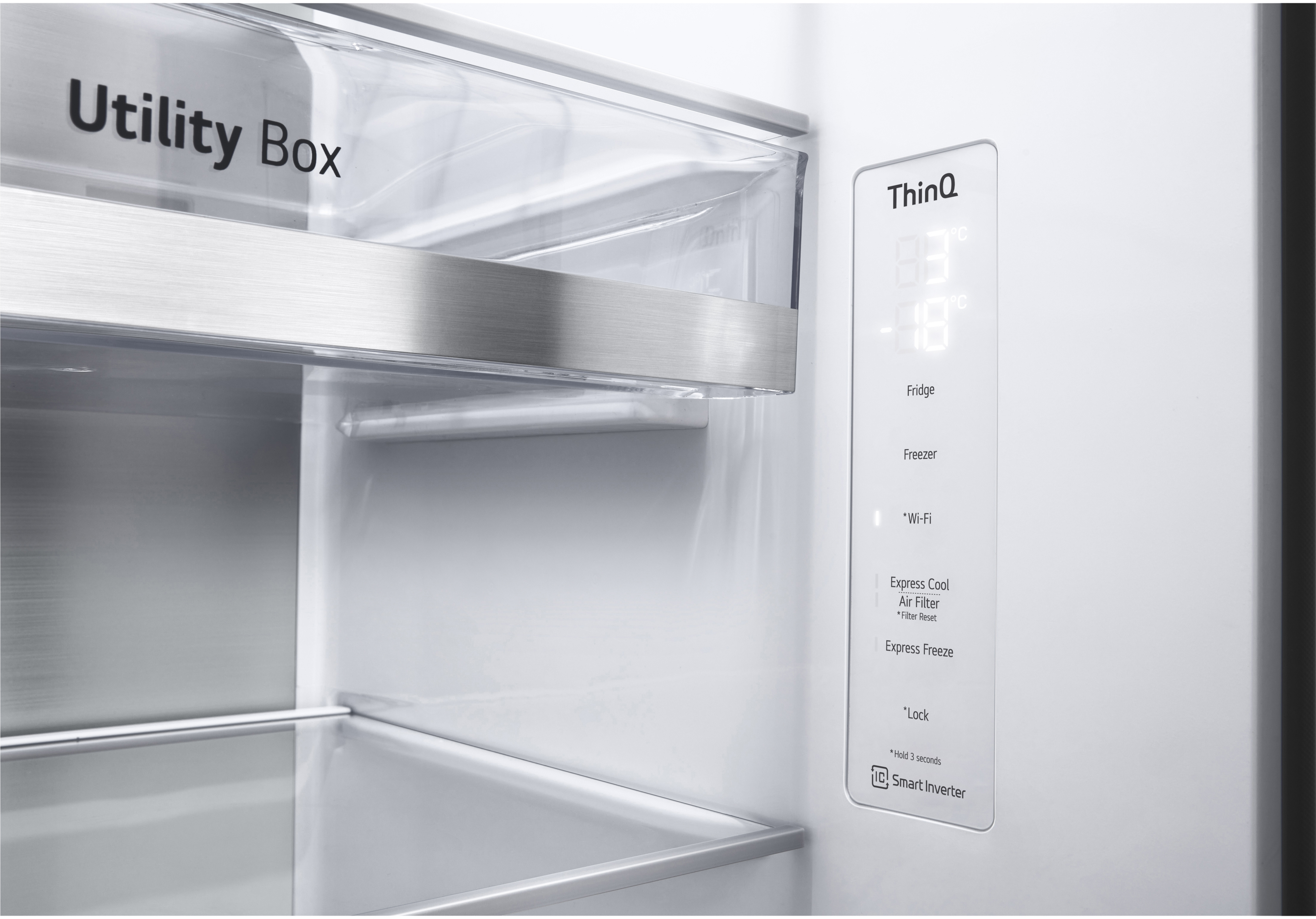 LG GC-Q257CBFV – холодильник Side-by-Side із об’ємом 655 літрів, ідеальний для великих сімей. Холодильна камера на 406 літрів оснащена чотирма полицями та двома ящиками. Морозильна камера на 249 літрів із системою No Frost не потребує розморожування. Функція InstaView Door-in-Door™ дозволяє бачити вміст без втрати холоду. Технологія DoorCooling+ забезпечує рівномірне охолодження. Інверторний компресор знижує енергоспоживання та шум. Сенсорне управління з дисплеєм дозволяє точно налаштувати температуру. Клас енергоефективності E економить електроенергію. Рівень шуму 36 дБ гарантує тиху роботу. LED-освітлення яскраво висвітлює внутрішній простір. Функція Express Freeze прискорює заморожування. Чорний корпус виглядає елегантно. Висота 179 см і ширина 91,3 см підходять для просторих кухонь. Користувачі хвалять його за функціональність і стиль. Гарантія – 2 роки.