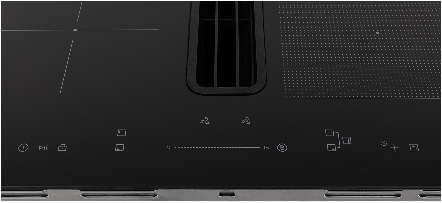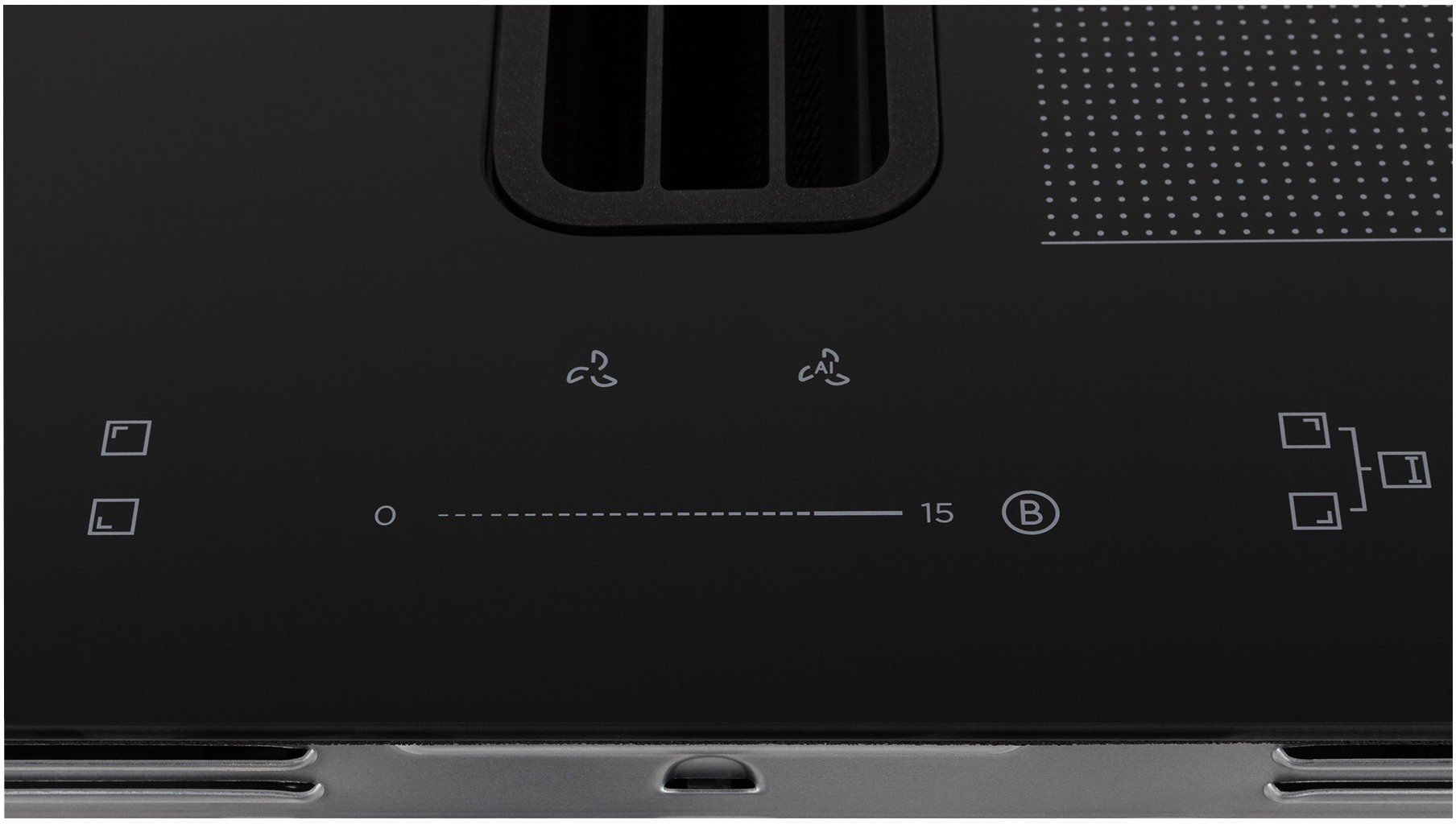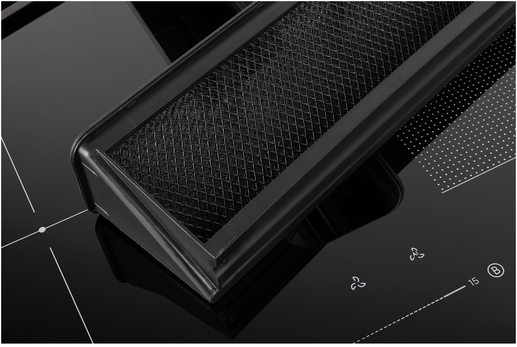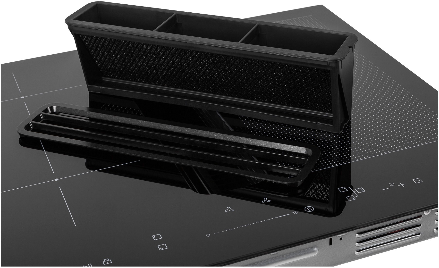 Вхідна решітка над витяжною системою знаходиться на одному рівні з керамічним склом, що дозволяє вільно переміщувати каструлі та сковорідки під час приготування.