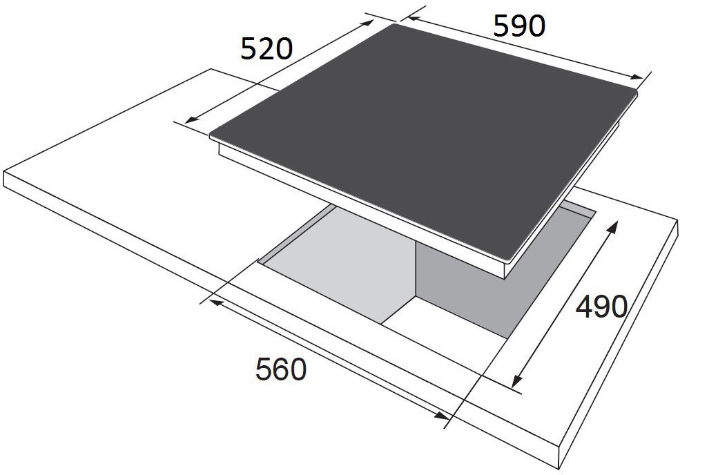 Комплектація включає варильну поверхню та інструкцію з експлуатації. Для підключення передбачено вилку та шнур живлення. Потужність газового підключення становить 8.1 кВт. Розміри ніші для вбудовування: 5.09 х 56 х 49 см. Загальна вага пристрою складає 9.93 кг.