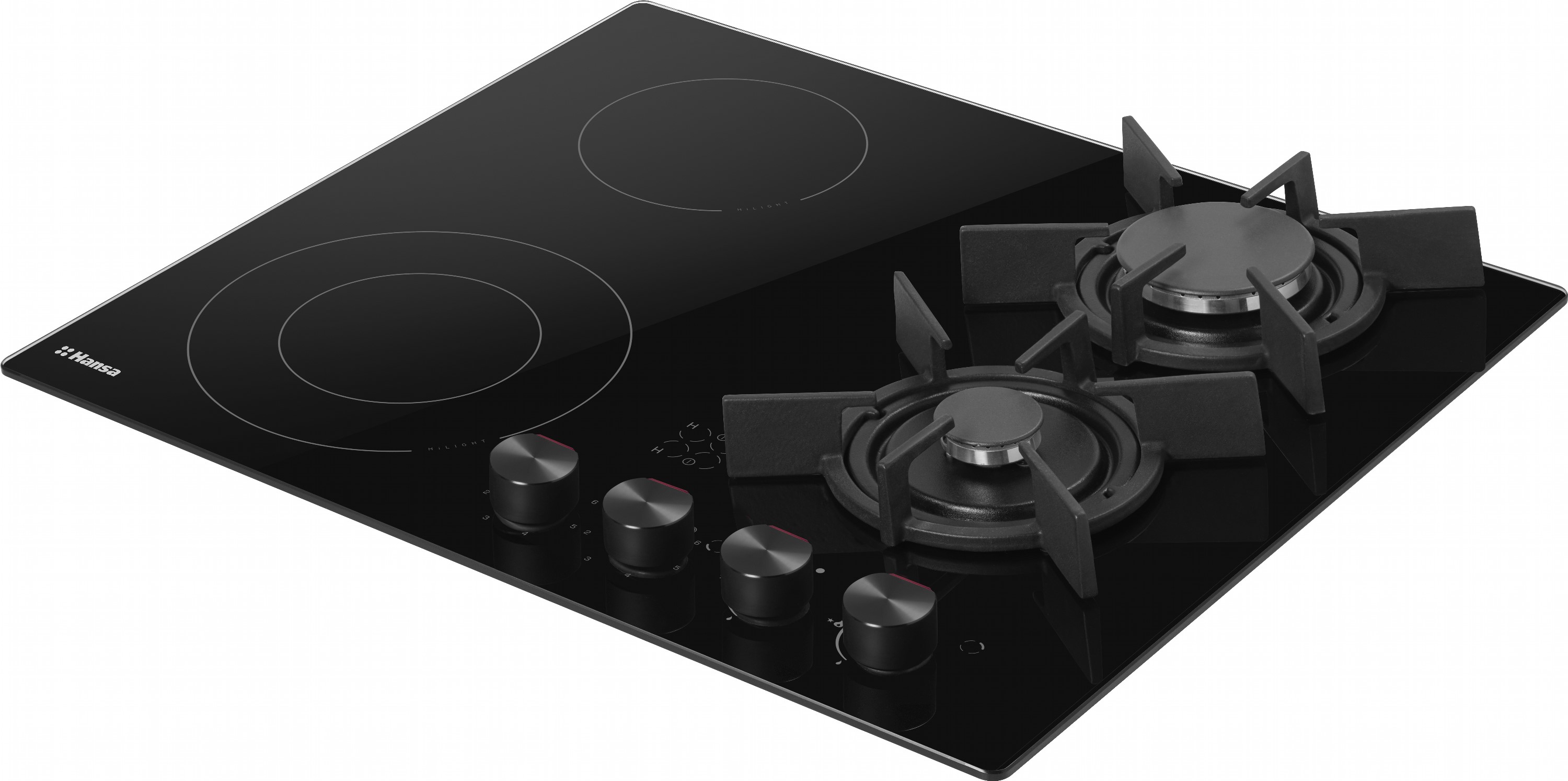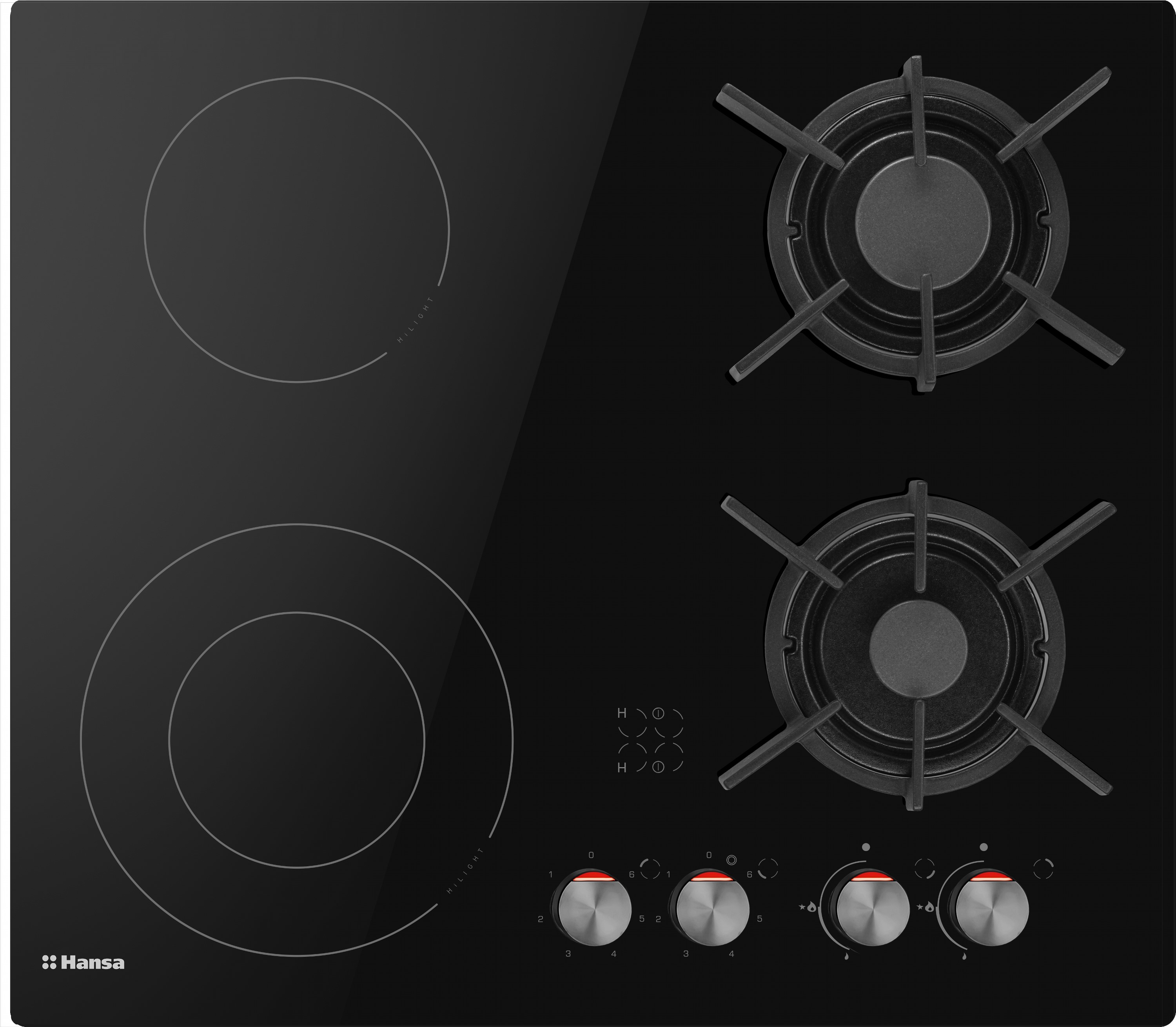 Варильна поверхня комбінована Hansa BHMS61414030 — це сучасне та зручне рішення для кухні, що поєднує газові та електричні конфорки. Завдяки комбінованій системі нагріву користувач отримує гнучкість у виборі способу приготування їжі. Газові конфорки оснащені надійним італійським обладнанням Defendi, що забезпечує рівномірне нагрівання та економічне використання газу. Електричні конфорки типу Hi-Light швидко нагріваються, що дозволяє оперативно приготувати або розігріти страви.