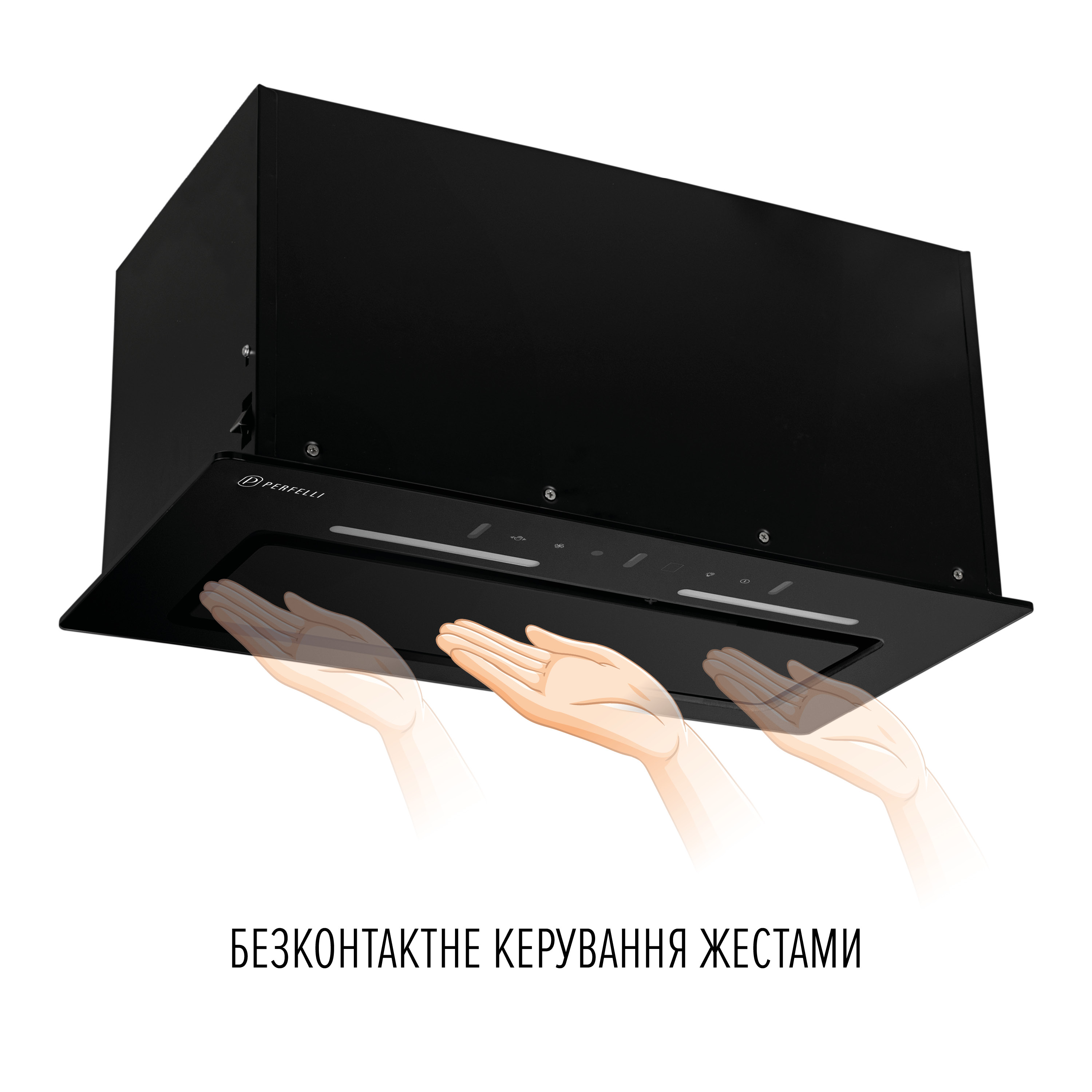Кухонна витяжка PERFELLI NUOVA 6QWRB NERO SILENZIO виготовлена з використанням передових технологій та має сучасний дизайн, забезпечуючи високу продуктивність і зручність у користуванні. Вона ефективно усуває запахи та випаровування під час приготування їжі, створюючи комфортні умови на кухні. Сенсорна панель керування дозволяє легко налаштовувати режими роботи та освітлення, а інноваційне керування жестами забезпечує ще більшу зручність, не залишаючи відбитків пальців і дозволяючи користуватися витяжкою без дотику. Завдяки повновбудованому типу монтажу витяжка має компактні розміри, що дає змогу раціонально використовувати кухонний простір, особливо на невеликих кухнях.