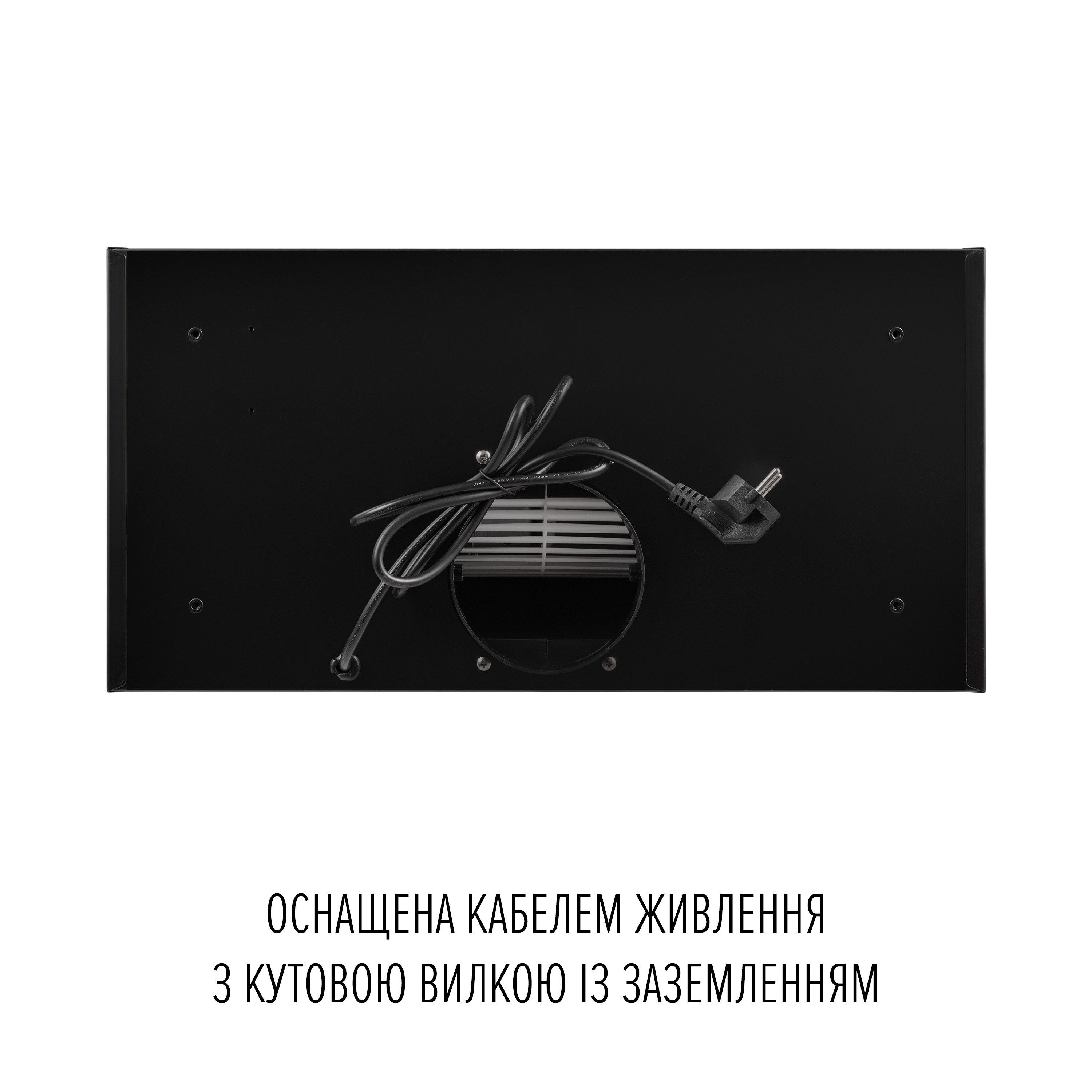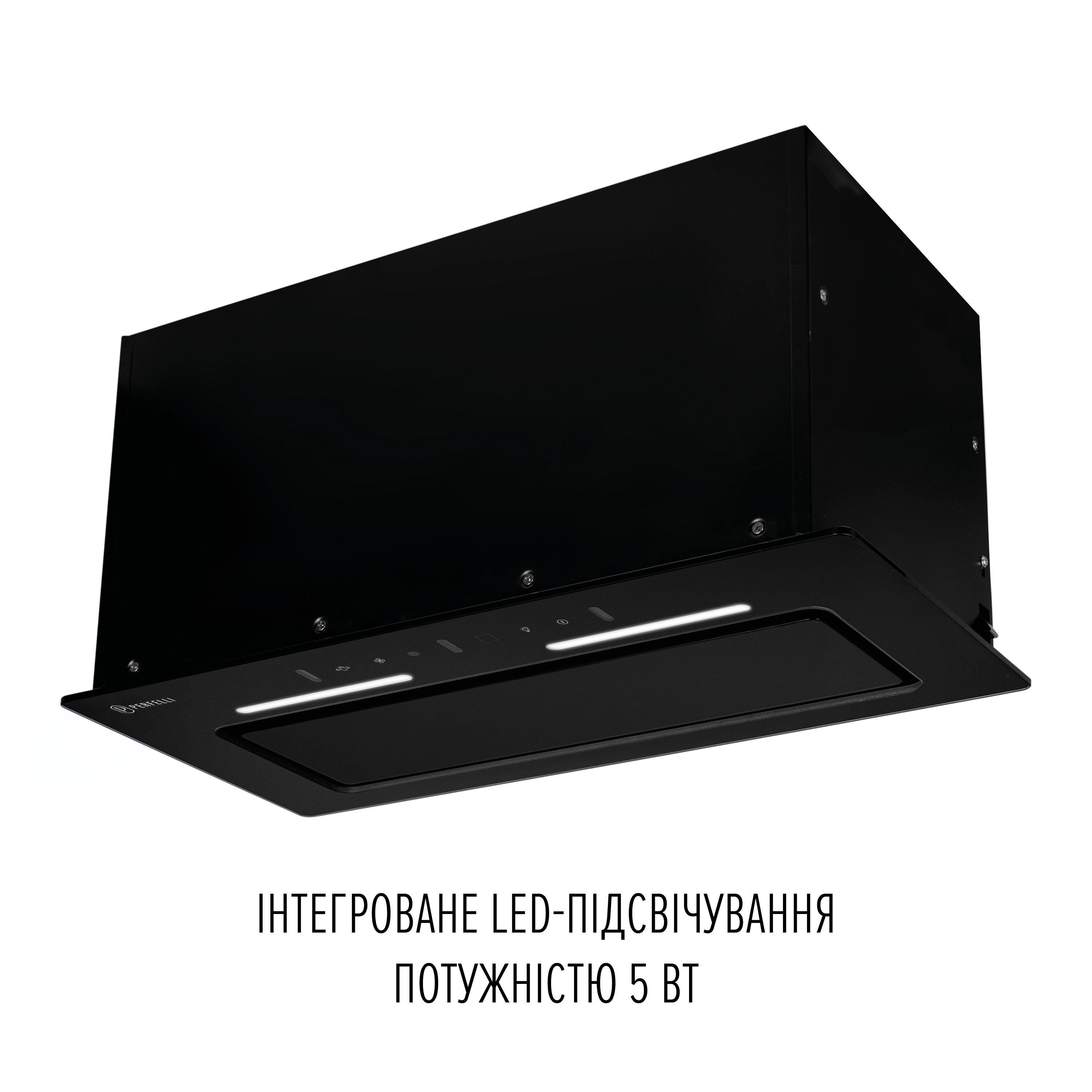 Витяжка ідеально вписується в будь-який кухонний гарнітур завдяки повновбудованій конструкції, створюючи ефект єдиної поверхні та зберігаючи лаконічність ліній інтер’єру. Чорний фасад із загартованого скла є універсальним і гармонійно поєднується з будь-якою кольоровою гамою, вирізняється стійкістю до високих температур і легко очищується. Повновбудована конструкція також забезпечує зручний доступ до фільтрів для їх очищення.