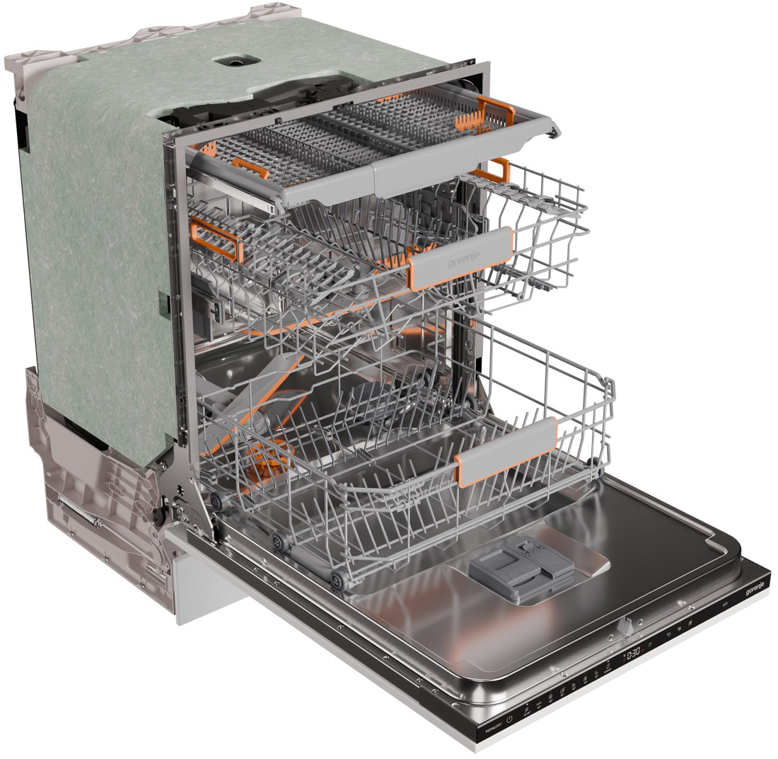 Кількість кошиків - 3Регулювання висоти верхнього кошика - ручнеКількість рівнів розбризкування води - 5Кількість розбризкувачів - 3Самоочисний фільтр Верхній кошик: Широкий сітчастий кошик; Ручка; Ручка з лог
