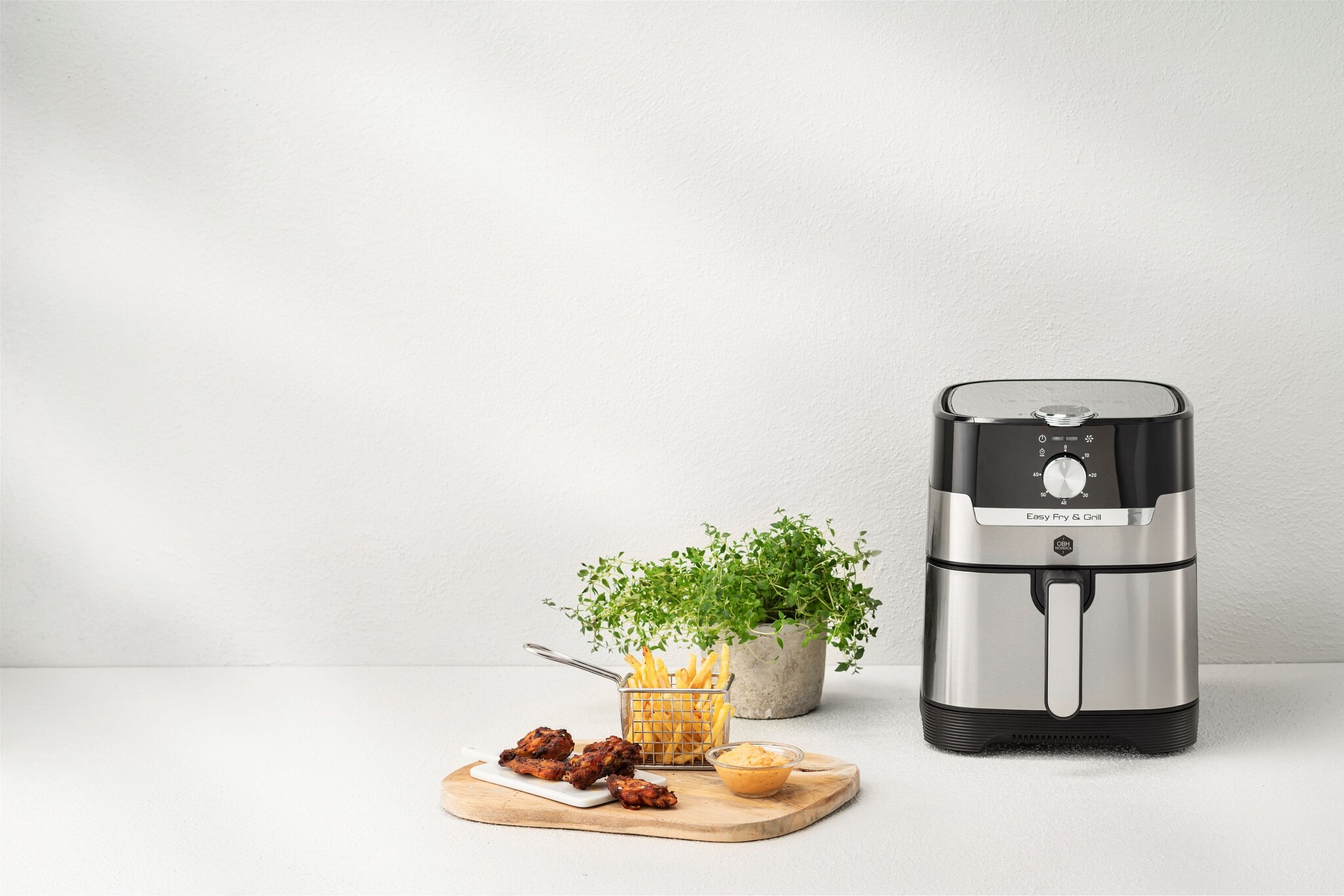 *На 99% менше додавання олії: 700 г свіжої картоплі фрі, приготовленої з 8 мл олії, в порівнянні з традиційною жаркою з 2 л олії