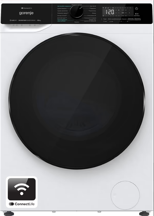 Gorenje WD2PA854ADW/UA оснащена безліччю корисних функцій: попереднє прання, регулювання температури, коротка програма, обробка парою для усунення складок і свіжості білизни, можливість додавання білизни під час циклу, регулювання віджиму, часу прання, рівня сушіння та об'єму води.