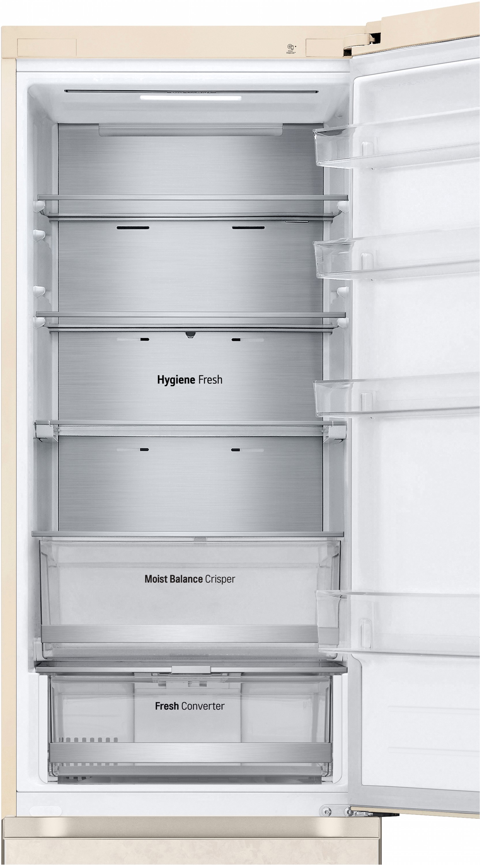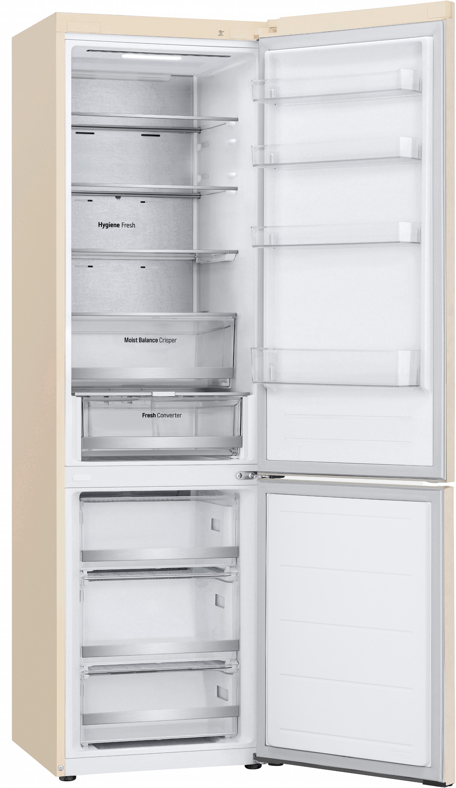 Мультипотокова система Multi Air Flow відповідає за рівномірний розподіл повітря, що гарантує однаковий температурний режим на всіх рівнях. Металева панель Metal Fresh не лише додає естетики, а й зберігає холод, покращуючи енергоефективність.