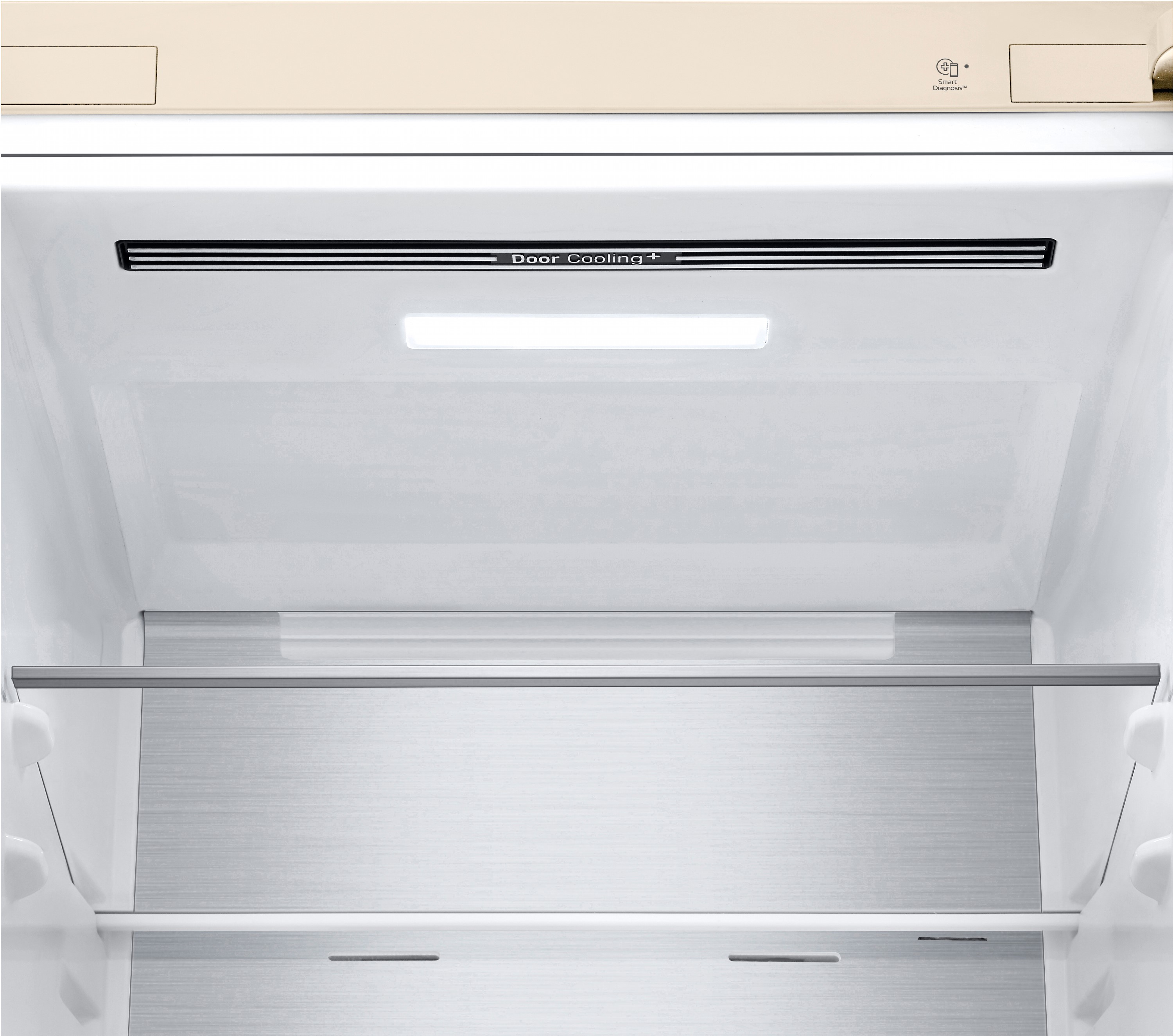Серед ергономічних рішень — складана полиця для зберігання габаритних предметів, сигнал відчинених дверей для економії енергії та нульовий зазор, що дозволяє встановлювати холодильник впритул до стіни без втрати зручності відкривання дверцят.