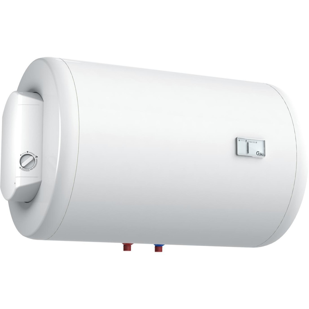 Електричний водонагрівач TIKI круглий GBH має об'єм 50 літрів і потужність 2 кВт. Він оснащений сухим нагрівальним елементом та механічним керуванням. Пристрій призначений для горизонтального монтажу та належить до класу енергоефективності D. Білий колір пристрою підходить для будь-якого інтер'єру.