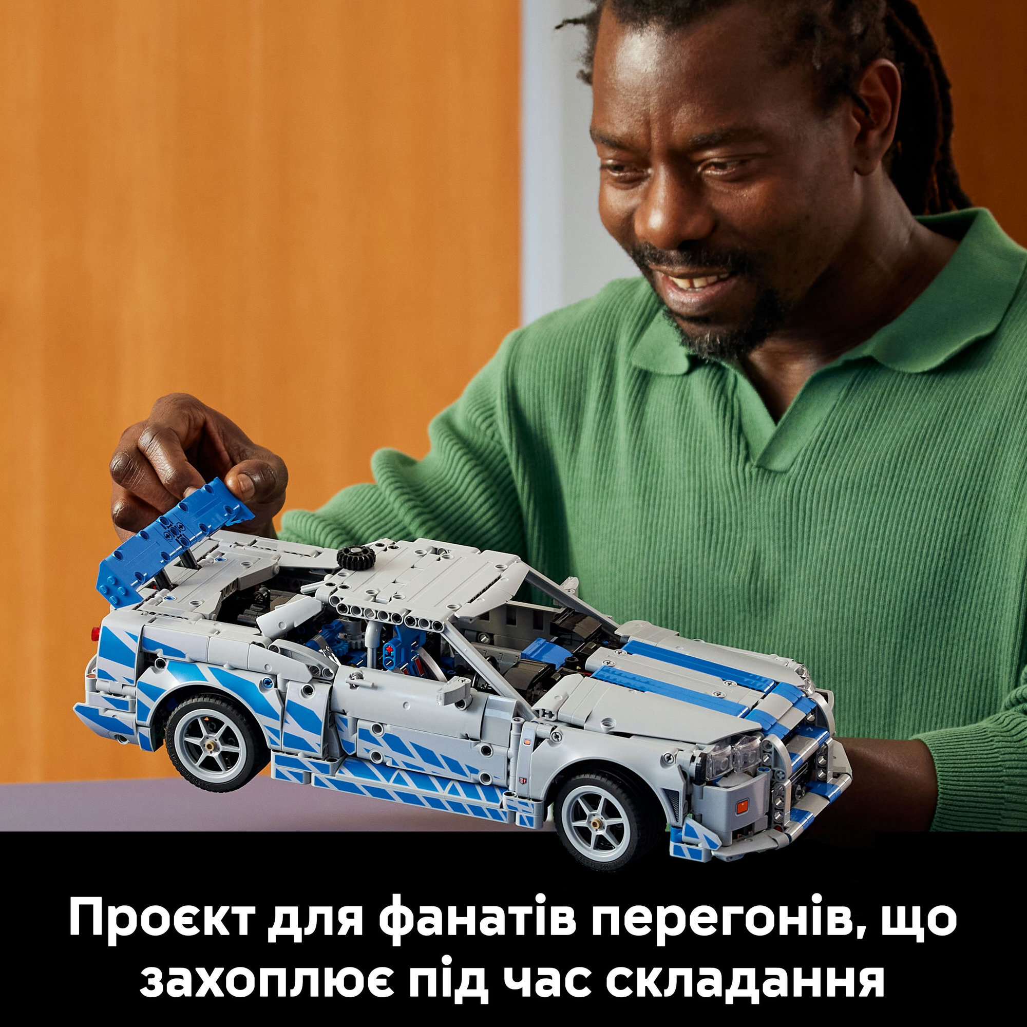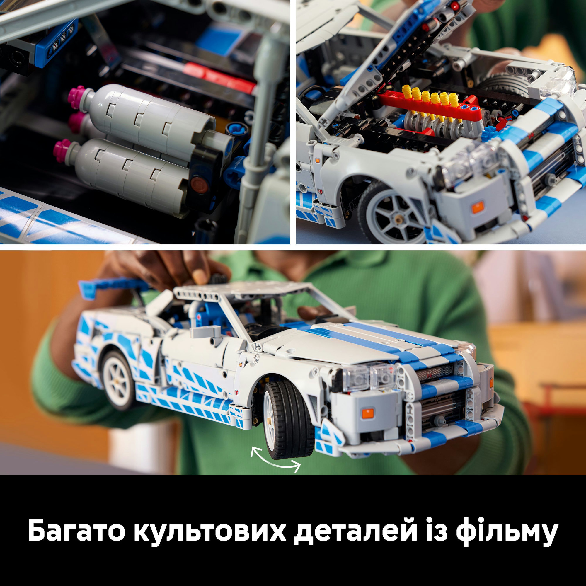 Перемикайте передачі й вирушайте за мріями у стилі Форсаж завдяки набору LEGO Technic Подвійний форсаж Автомобіль Nissan Skyline GT-R (R34). Складайте достовірні деталі, як-от кермове управління, передня і задня підвіски й 6-циліндровий двигун. Регулюйте крило, і спробуйте першу в історії LEGO Technic функцію дрифту. Все це дозволить відтворити ефектні маневри з улюблених сцен перегонів.