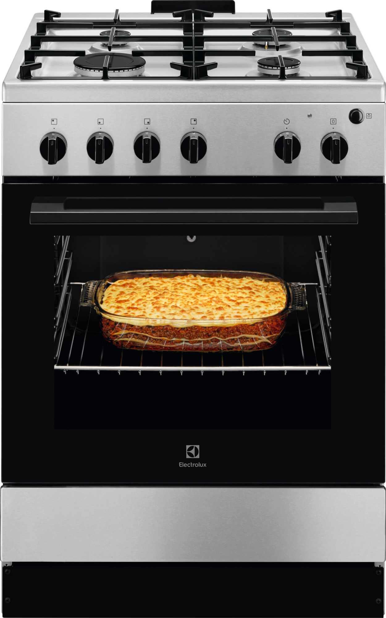 Традиційна газова плита LKG604013X Зручна й ефективна газова варильна поверхня. Готуйте смачні страви на нашій газовій варильній поверхні. Нею дуже легко керувати і зручно користуватися. Готуйте на повільному вогні або обсмажуйте стейки. Відкрийте для себе силу газу й готуйте з упевненістю. Відкрийте для себе нові можливості завдяки газовій духовій шафі з електрогрилем. Насолоджуйтеся стравами, які неможливо приготувати у звичайній духовій шафі. Створюйте золотаві гратени, хрусткі лазаньї та хрумкі скоринки. Завдяки пересувним полицям ретельне очищення духової шафи стає легшим, ніж будь-коли, навіть у важкодостуних місцях, за менший час і з меншими зусиллями. Функція каталітичного очищення дає змогу уникнути накопичення бруду й жиру в автономній духовій шафі. Самоочищення духової шафи автоматично запускається за температури 250°C. При цьому ваша участь зовсім не потрібна. Обертовий рожен забезпечує рівномірне смаження м’яса з утворенням суцільної хрусткої скоринки чудового коричневого кольору.