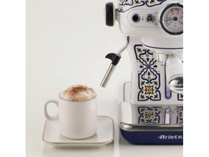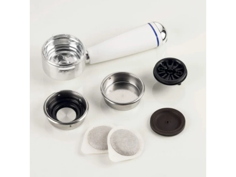 Бренд - Ariete; Тип - Ріжкова (Еспресо); Використовувана кава - Мелений, Чалді; Попередньо програми - Еспресо; Приготування капучіно - Ручний; потужність - До 1 кВт;Колір - Білий;Регулювання - Подача пари;Оснащення - Піддон для крапель;Вага, кг - 3.69;Розміри (ВхШхГ), мм - 280 х 230 х 310;