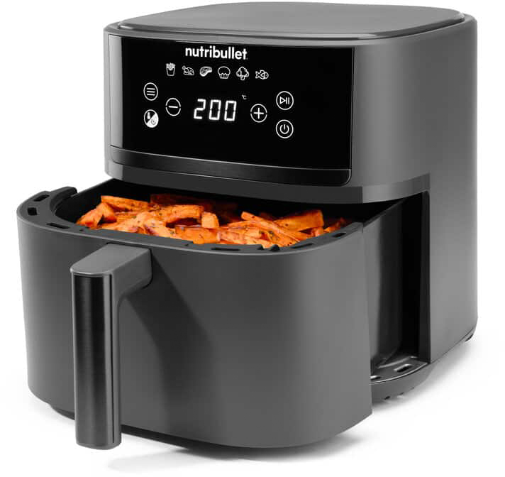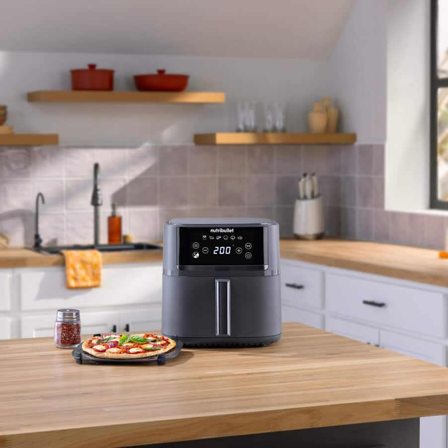 Відкрийте для себе світ здорової та смачної їжі з мультипіччю Nutribullet NBA0611DG! Цей компактний і потужний прилад, виконаний з міцного пластику в стильному сірому кольорі, стане незамінним помічником на вашій кухні. Володіючи сенсорним керуванням і потужністю 1700 Вт, Nutribullet NBA0611DG швидко та рівномірно приготує ваші улюблені страви завдяки металевому ТЕНу та інноваційній технології Vortex 360°, яка забезпечує циркуляцію гарячого повітря для ідеально хрусткої скоринки за мінімального використання олії. З 6-літровою чашею, покритою високоякісною керамікою без PFAS, ви зможете скоротити кількість жиру в рецептах до 90%*, насолоджуючись при цьому чудовим смаком і легкістю очищення.
