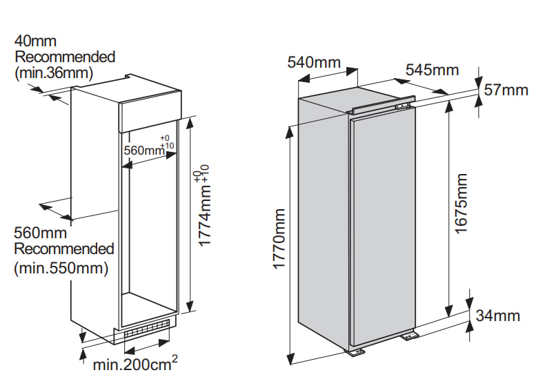 Вбудований холодильник Whirlpool WHSD18A013C1 — це просторе однокамерне рішення з корисним об’ємом 314 літрів, що чудово підійде для великої родини або кухні з окремою морозильною камерою. Модель має статичну систему охолодження з крапельним розморожуванням, підтримує рівномірну температуру завдяки внутрішній вентиляції та працює майже безшумно — лише 34 дБ, що ідеально для житлових приміщень.